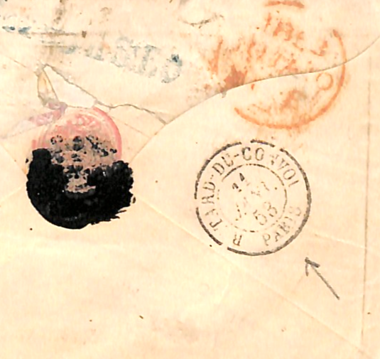 GB QV PENNY PINK Postal Stationery Cover 2d BLUE STRIP OF FOUR 1853 3-Colour Franking 10d Rate DESTINATION MAIL Paris France RETARD DU CONVOI CDS Reverse {samwells}XB1