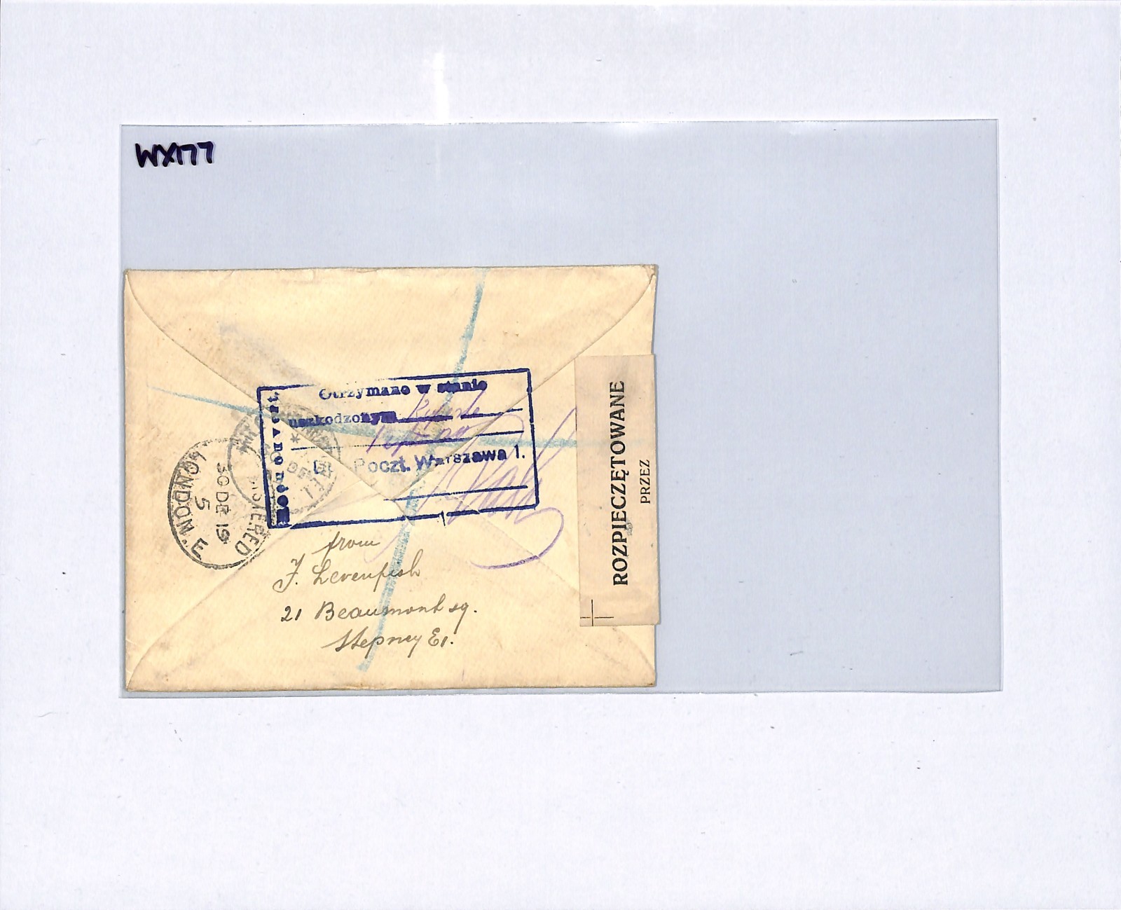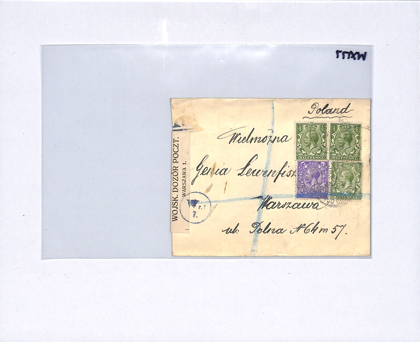 GB Cover London Registered POLAND Warsaw Damaged Explanatory 1919 WX177