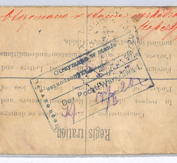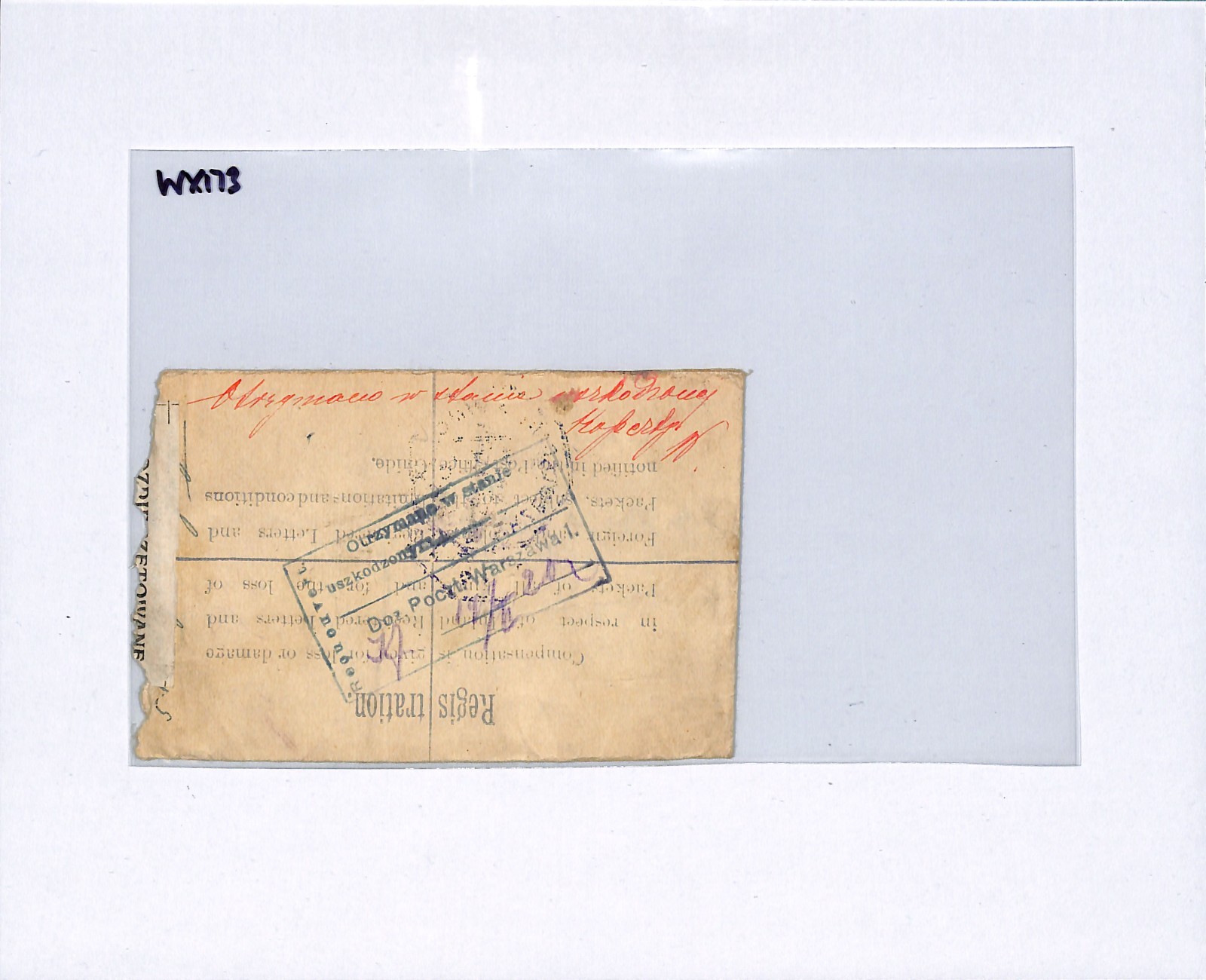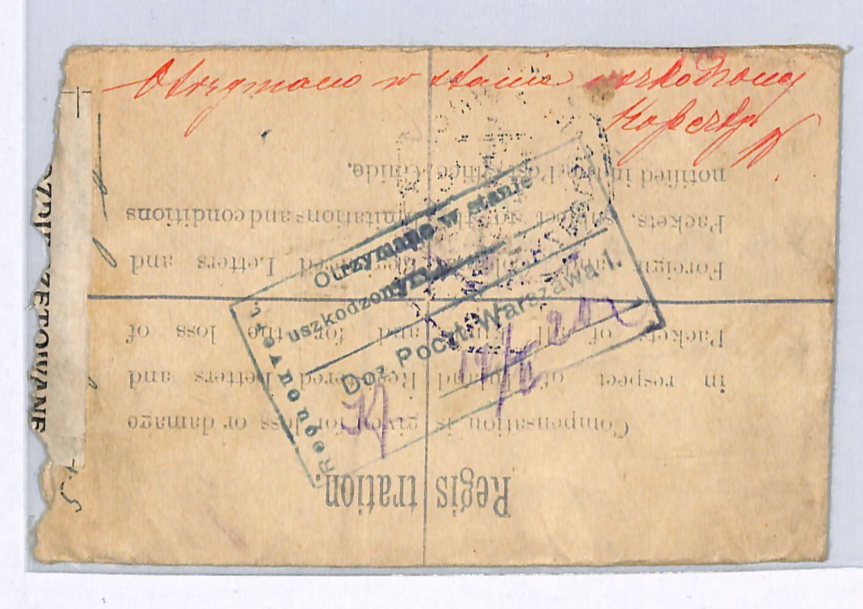 FULL OF INTEREST. Original contents possibly stolen? WARSAW EXPLANATORY CACHET states RECEIVED DAMAGED. Overall Good for an item of this type & period. Please look at all the scans to help form your own opinion (WAF).
