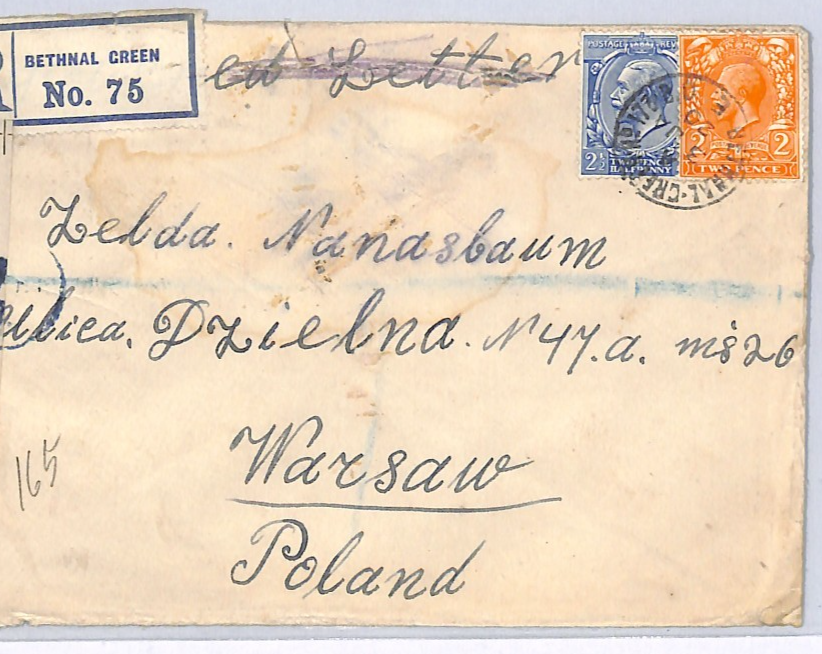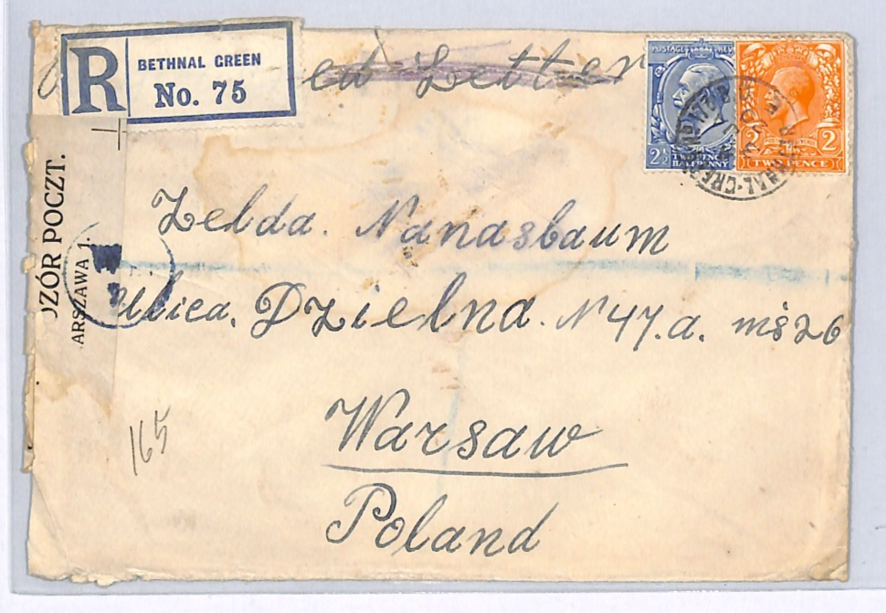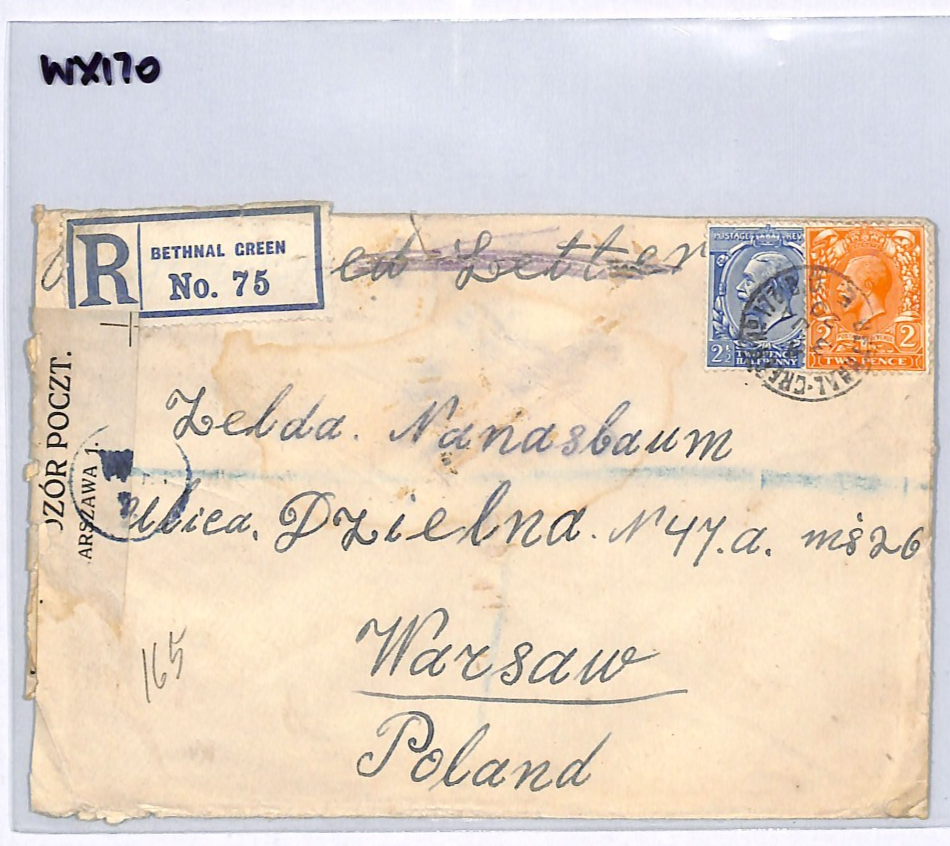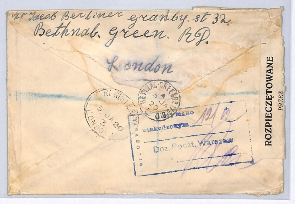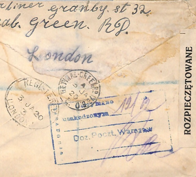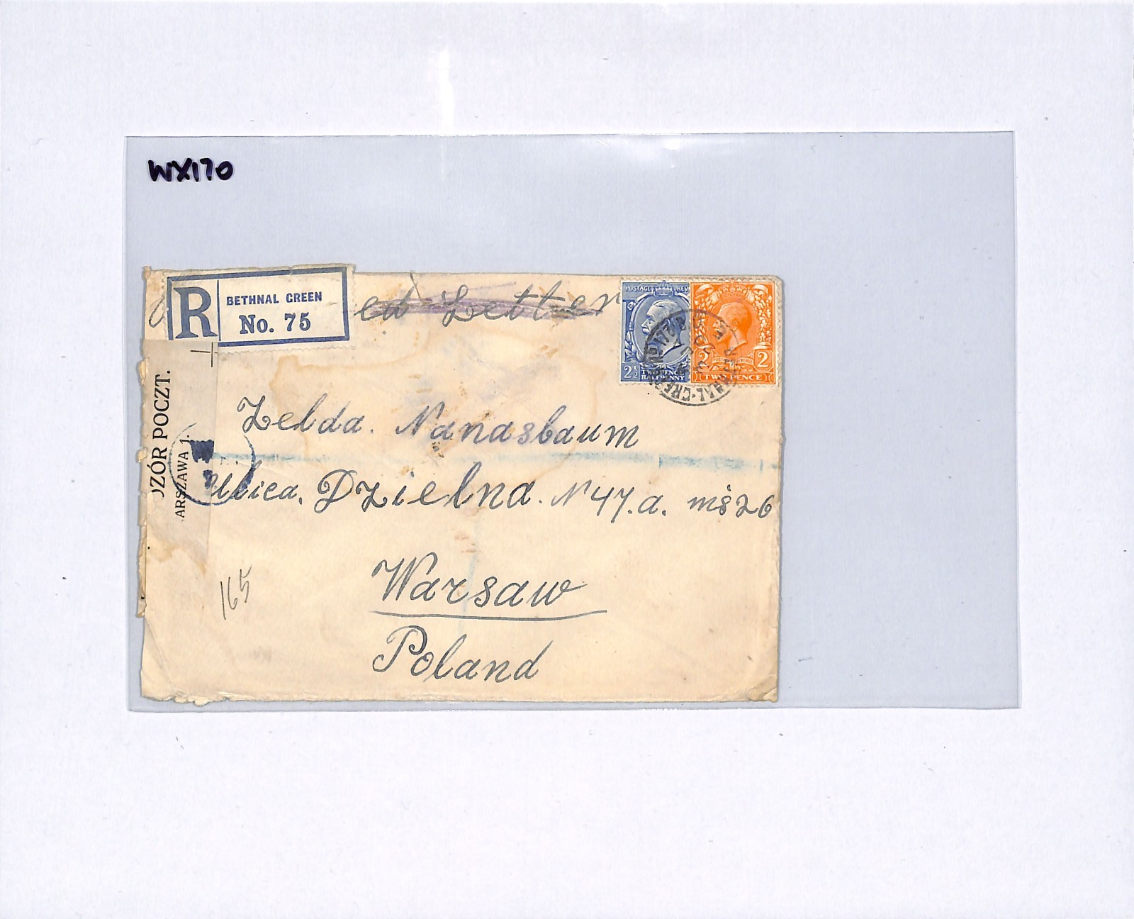 GB Cover London Registered POLAND Warsaw Damaged Explanatory 1920 WX170