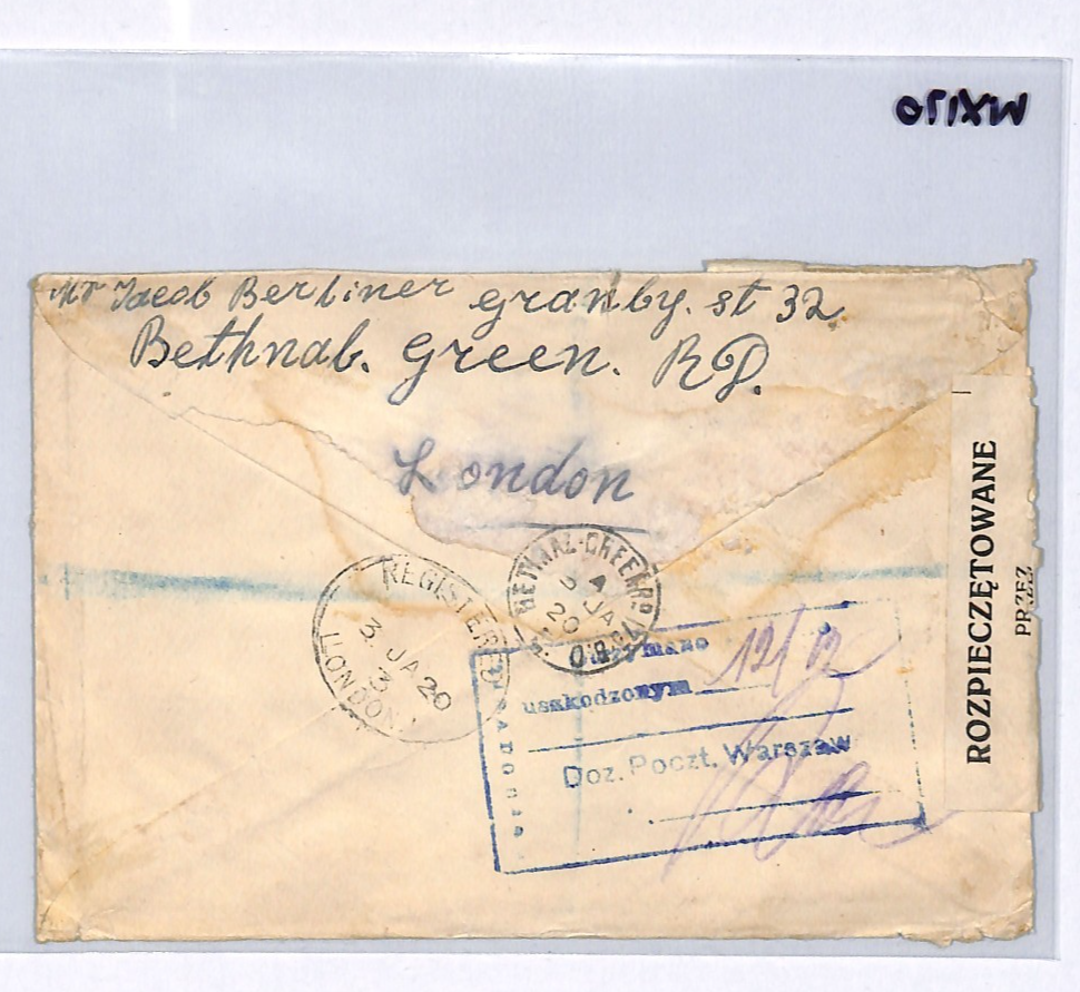 FULL OF INTEREST. Original contents possibly stolen? WARSAW EXPLANATORY CACHET states RECEIVED DAMAGED. Overall VG/Fine for an item of this type & period. Please look at all the scans to help form your own opinion (WAF).