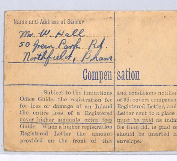 GB REGISTERED Cover 3d Postage Due POSTED OUT OF COURSE Birmingham Registered Bromsgrove 1947 XG198