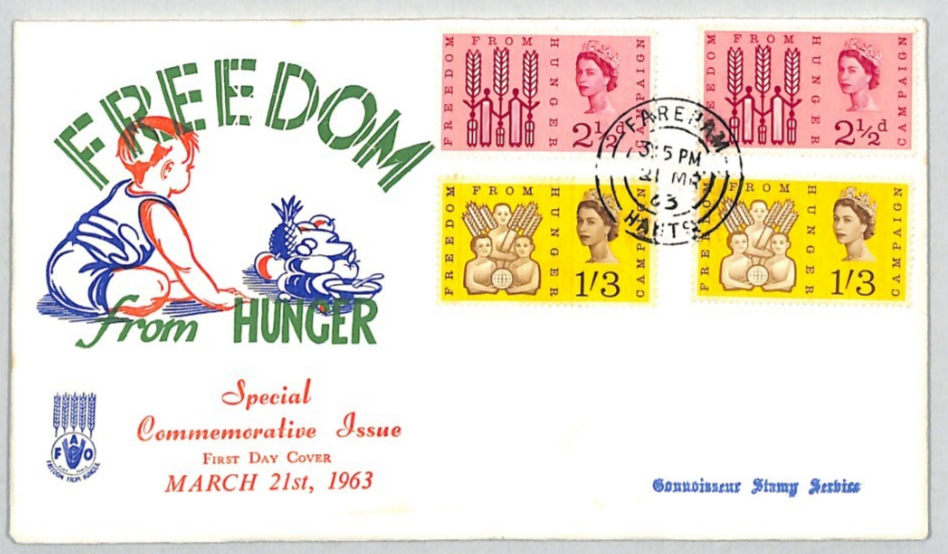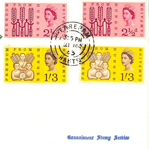 GB QEII ILLUSTRATED 1963 FDC *FFH* Freedom Hunger PHOS & ORD Sets Fareham XE187