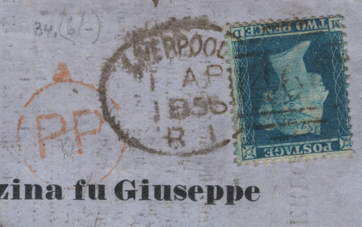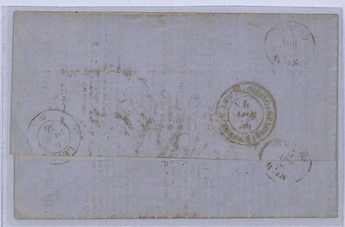 GB QV 2d Blue LIVERPOOL SPOON Cover PIEDMONT Lesa Destination Mail 1856 REDUCED RATE PRINTED MATTER (Sender Registered With GPO) WA2