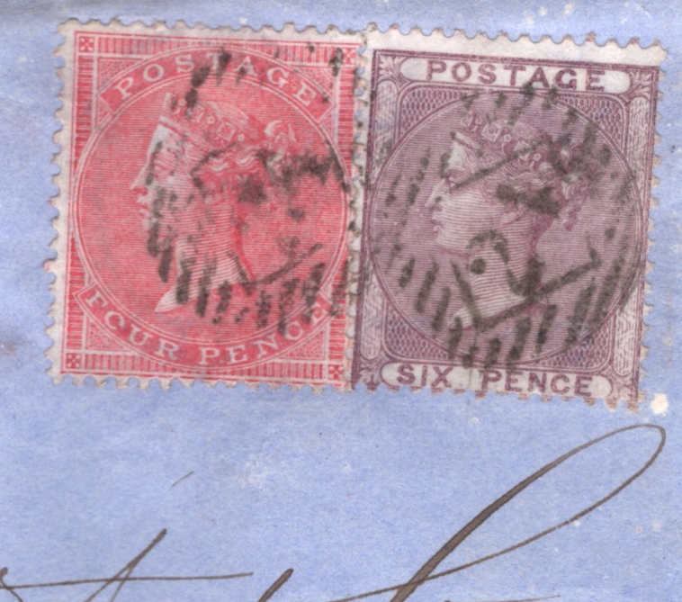 Note DISTINCTIVE REGISTERED POSTMARK of London LOMBARD STREET Post Office. FINE STRIKE IN RED on face of cover with both 4d Rose & 6d Lilac issues. STAMPS ARE VERY FINE. Some white spotting of Azure business paper letter-sheet otherwise Very Fine. Overall VG/Fine for an item of this type & period. Please look at all the scans to help form your own opinion (WAF).