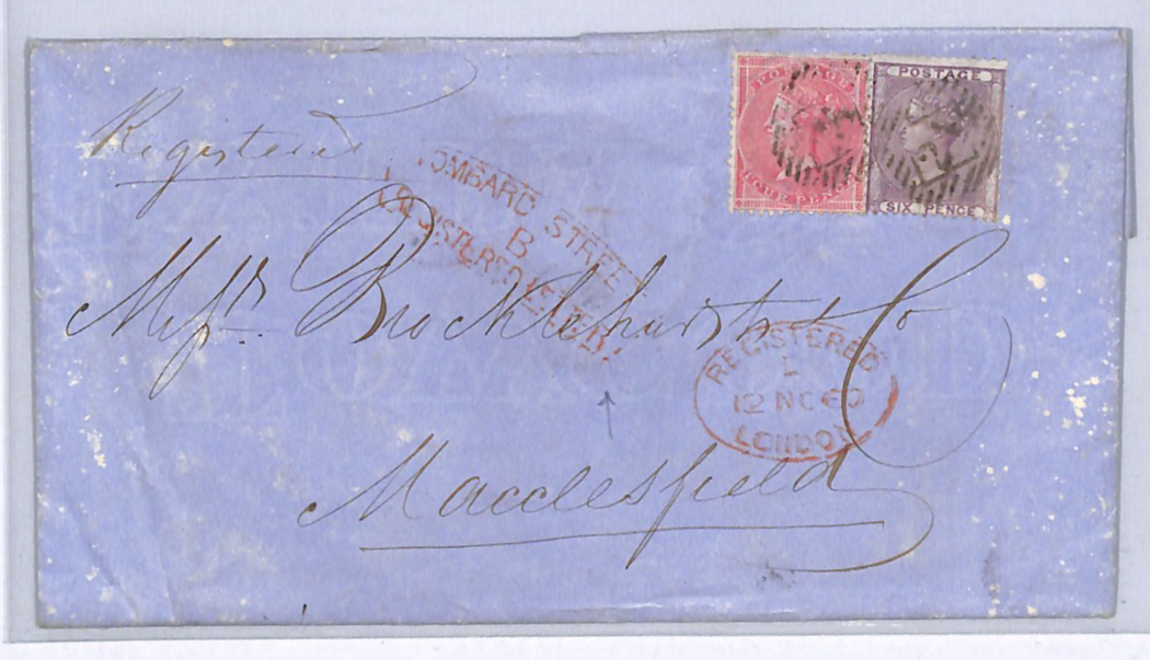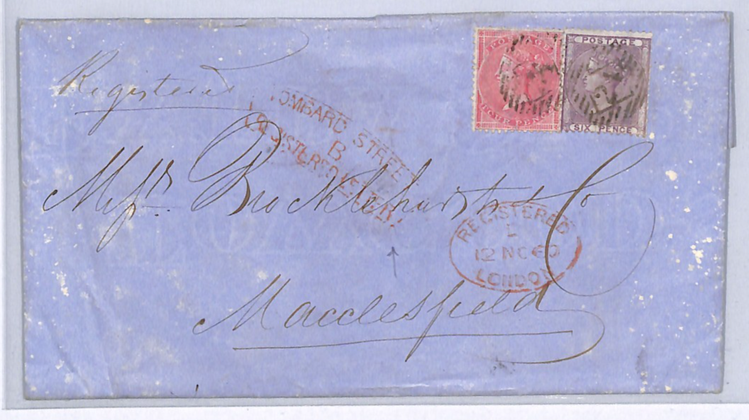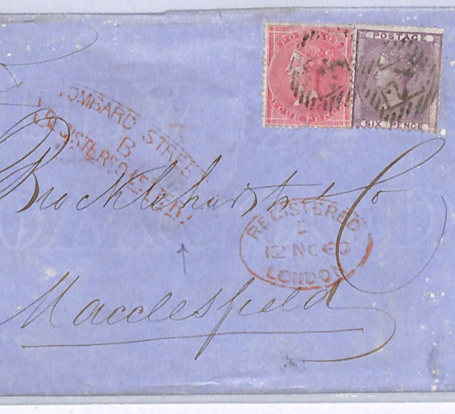 GB QV 4d 6d Cover *LOMBARD STREET/REGISTERED LETTER* Framed London Postmark 1860 Macclesfield WY222