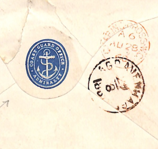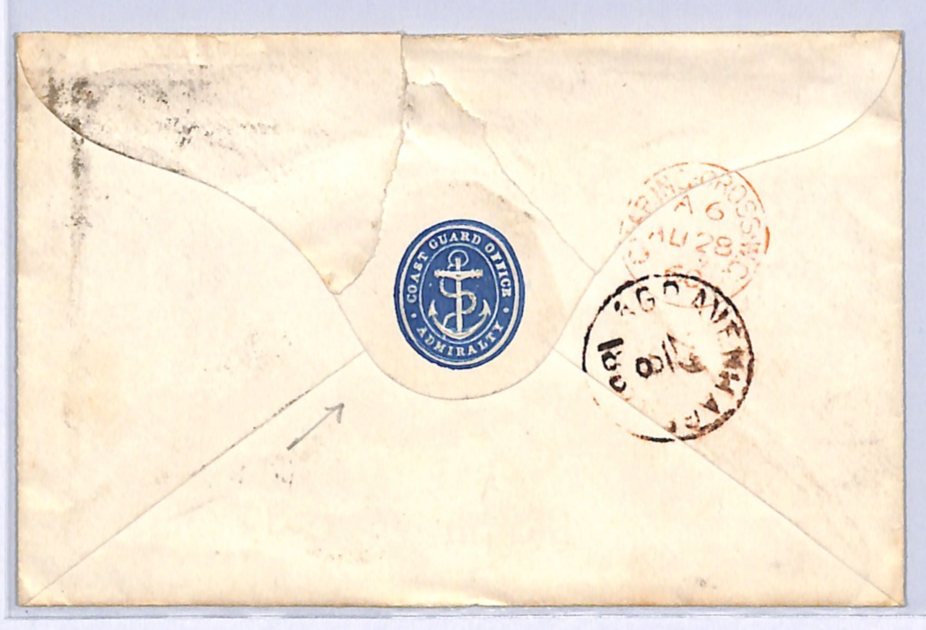 GB QV 4d Pair Cover *COAST GUARD OFFICE* Anchor ADMIRALTY Crest 1860 Hague WA11