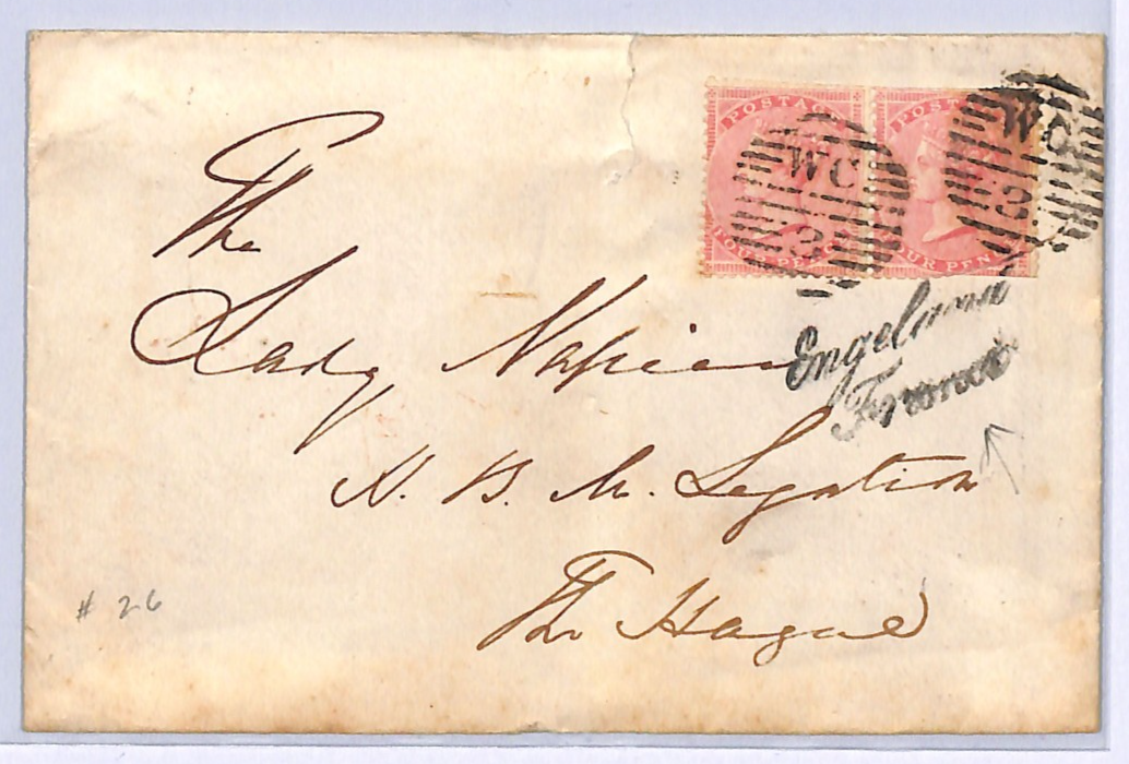 GB/NETHERLANDS Cover COAST GUARD ADMIRALTY London Hague 1860 4d Pair WA11