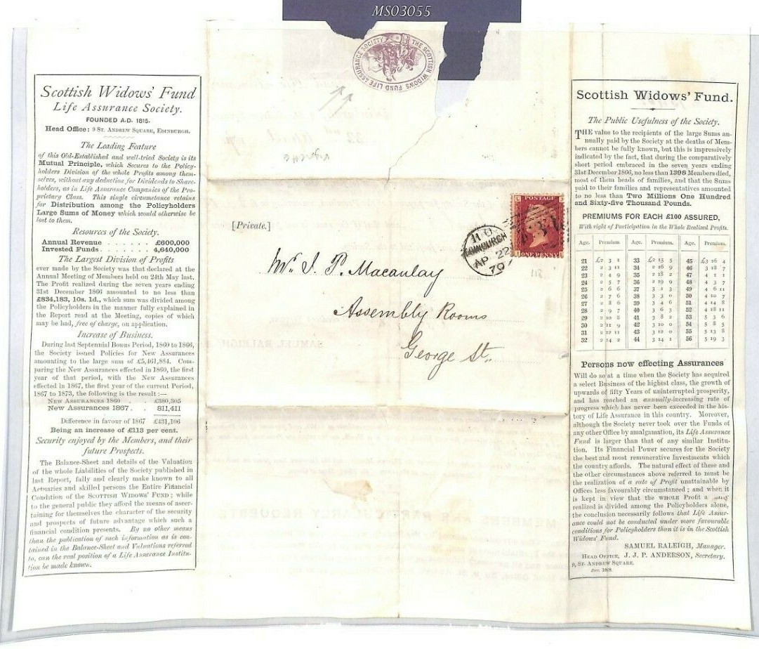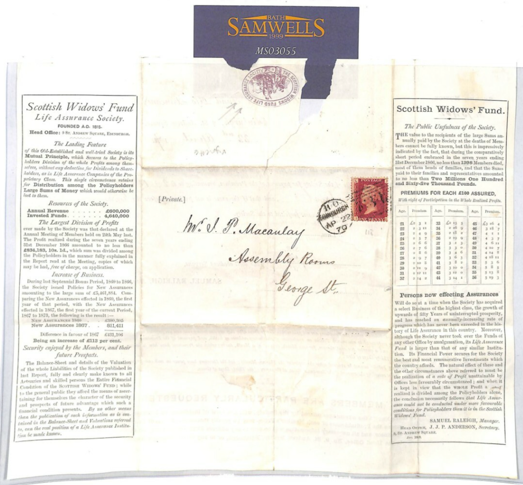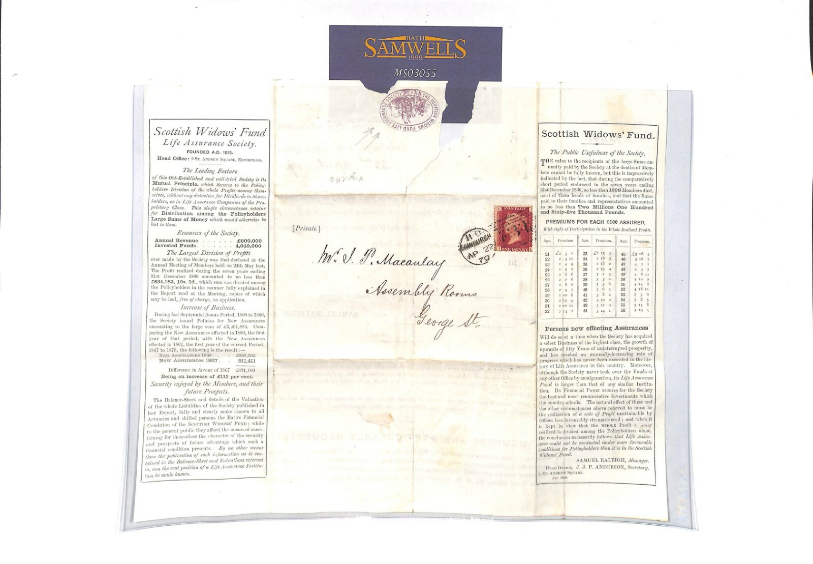 GB QV Cover ADVERT LETTERSHEET Penny 1d Red 1870 *Scottish Widows Fund* MS3055