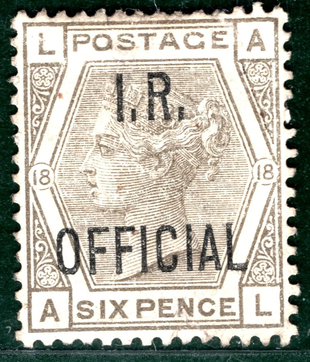 GB QV OFFICIAL SG.O4 6d Grey *I.R. OFFICIAL* Overprint (1882) Mint MNG Cat £350- HPR120