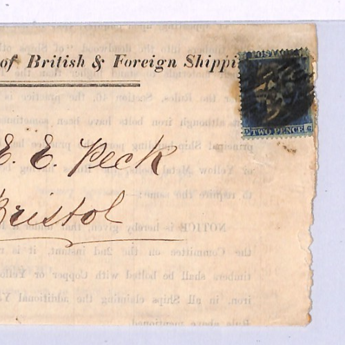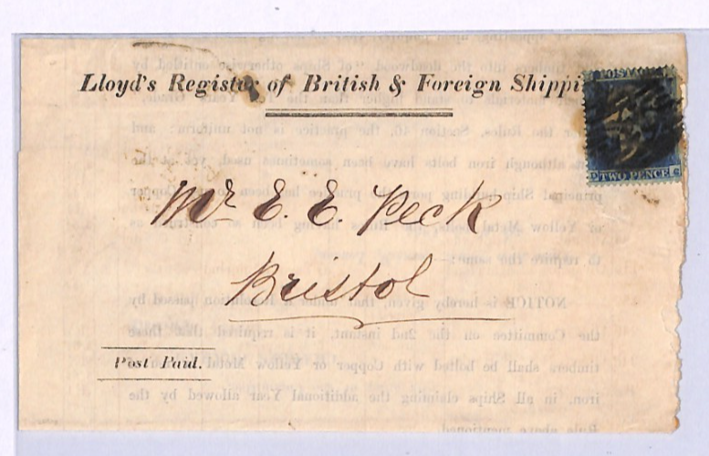 GB QV SG.19 Cover 1854 2d BLUE Lloyds Shipping Register Mail BRISTOL *RAILWAY* TRANSIT Yellow CDS Temple Meads Station XK265