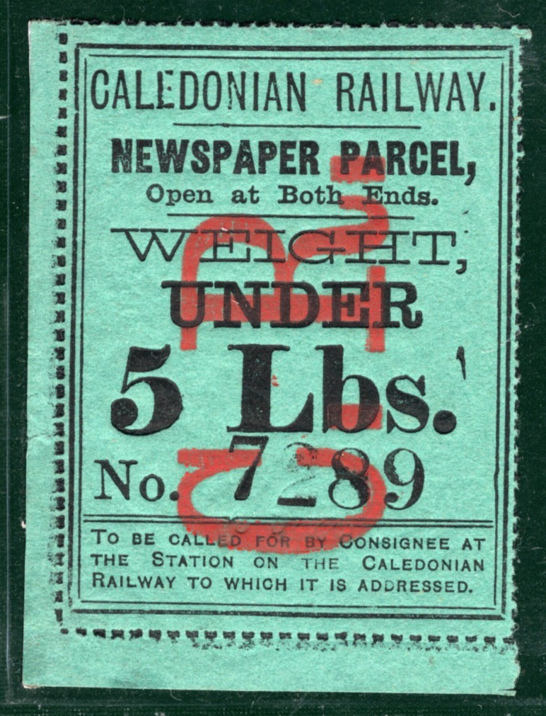 GB Scotland CALEDONIAN RAILWAY Newspaper Parcel Stamp 5lbs *C R* O/p Mint VS19