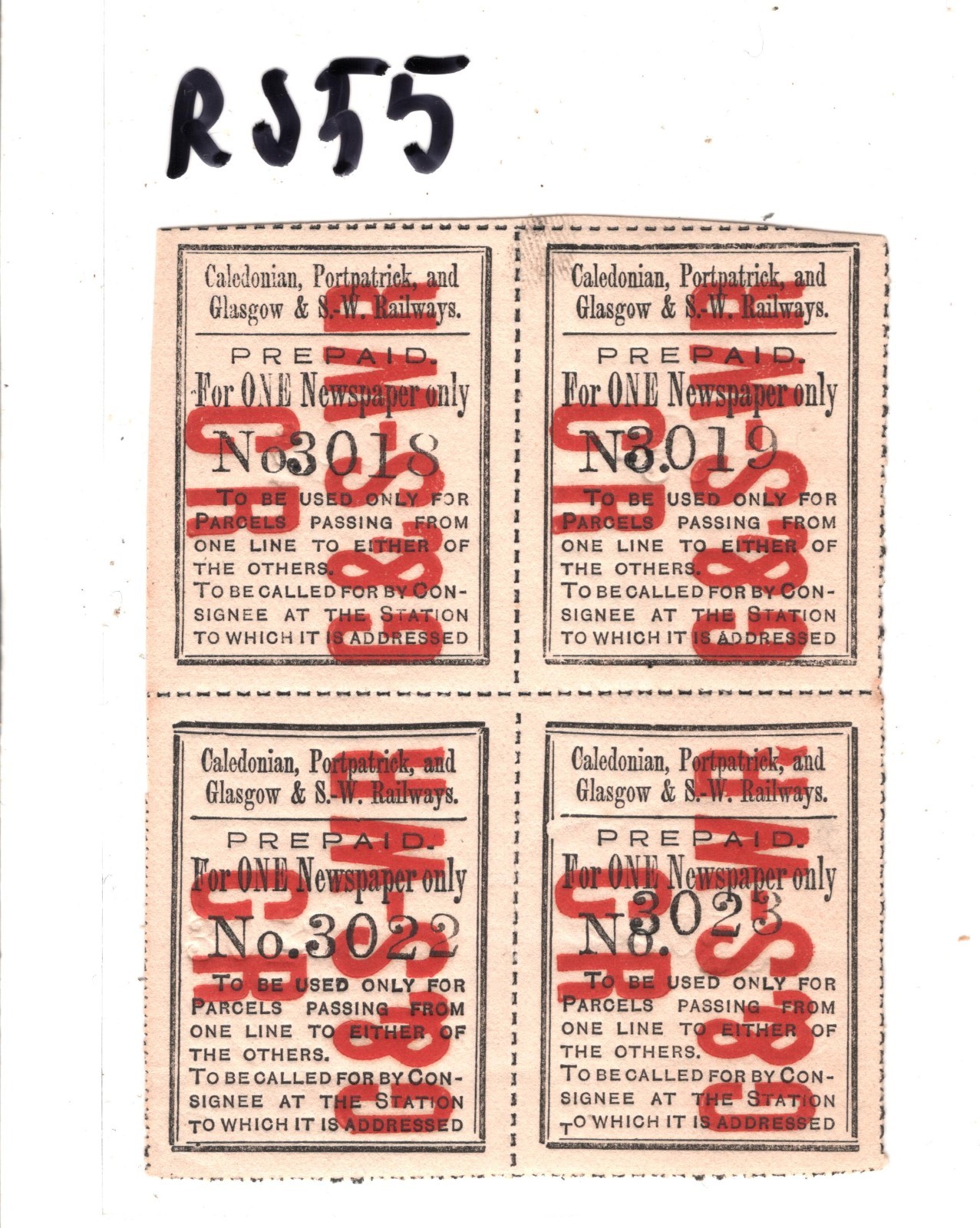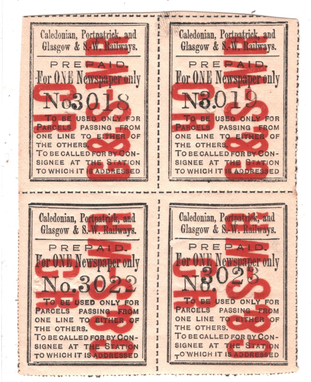 GB Scotland G&SWR/CALEDONIAN RAILWAY Newspaper Stamp Block{4} Mint MNH RS55