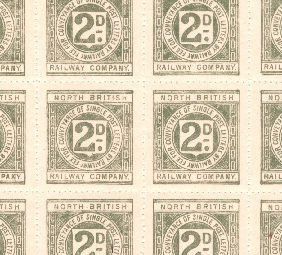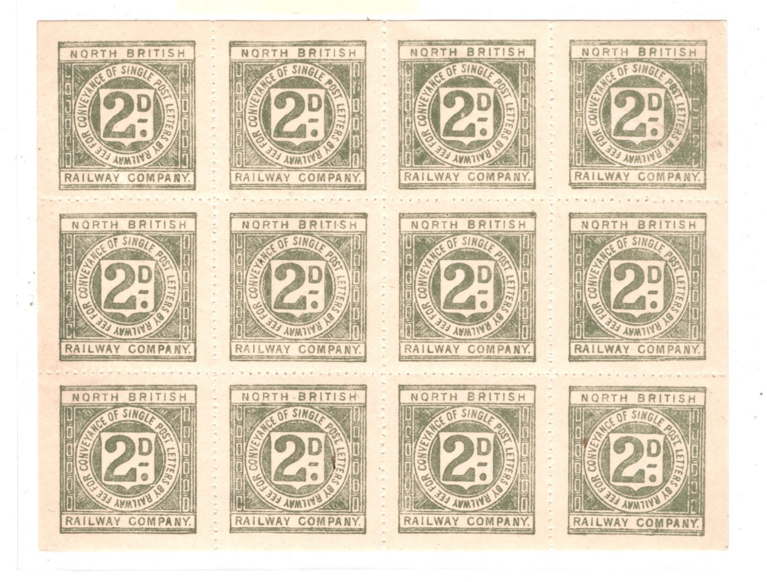 GB Scotland NORTH BRITISH RAILWAY Letter Stamp 2d Grey-Green *FULL SHEET* RS51