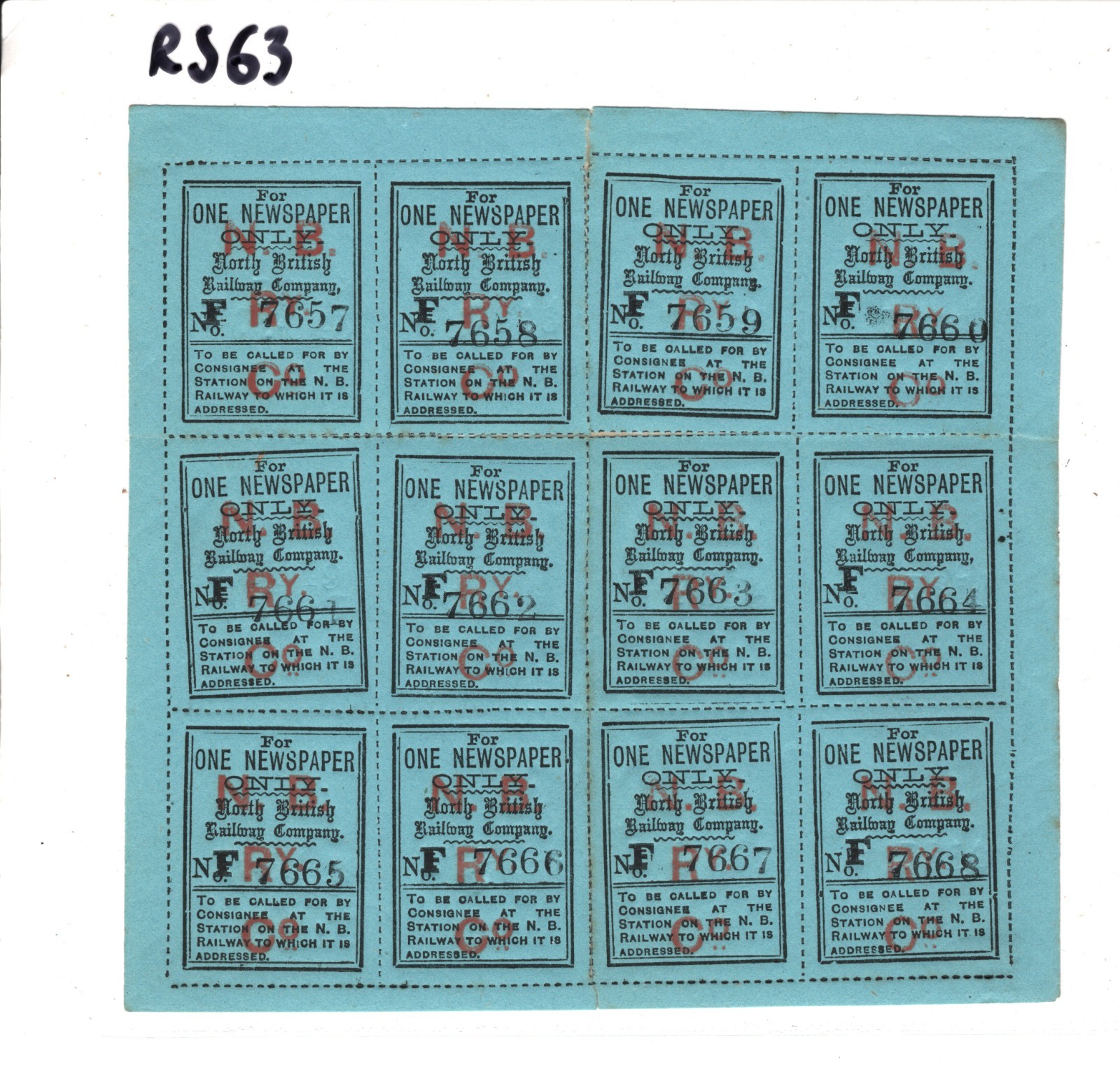 GB Scotland NORTH BRITISH RAILWAY Newspaper Stamp SHEET{12} NBR Mint MM RS63