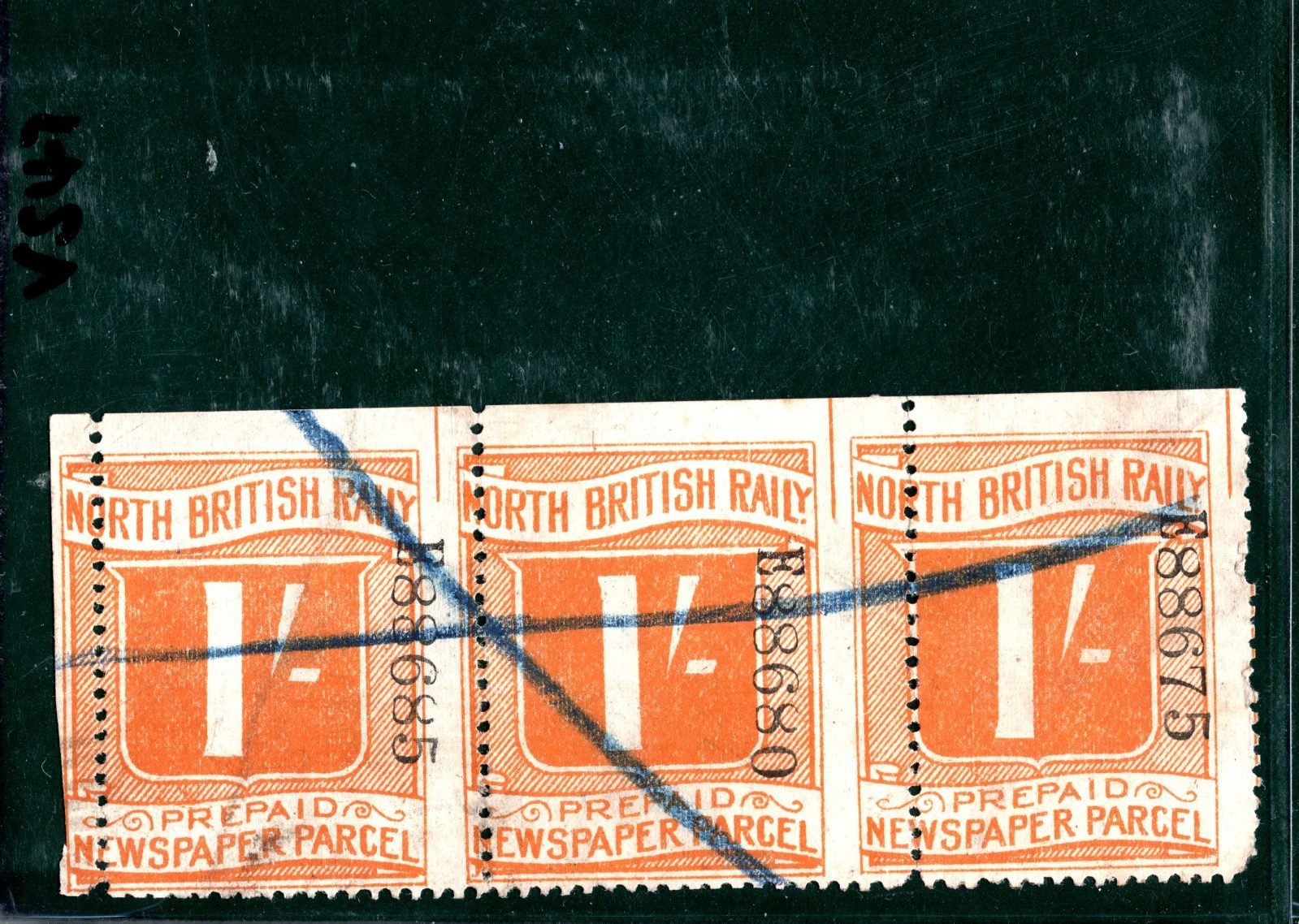 GB Scotland NORTH BRITISH RAILWAY Newspaper Parcel Stamp BLOCK{3} 1s NBR Used VS47