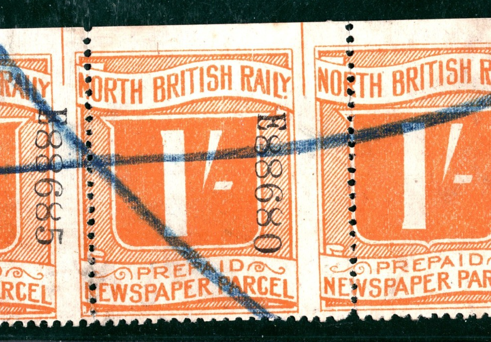 GB Scotland NORTH BRITISH RAILWAY Parcel Stamp *MISPERF* 1s NBR Strip{3} VS47