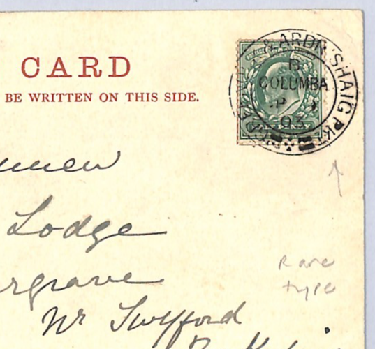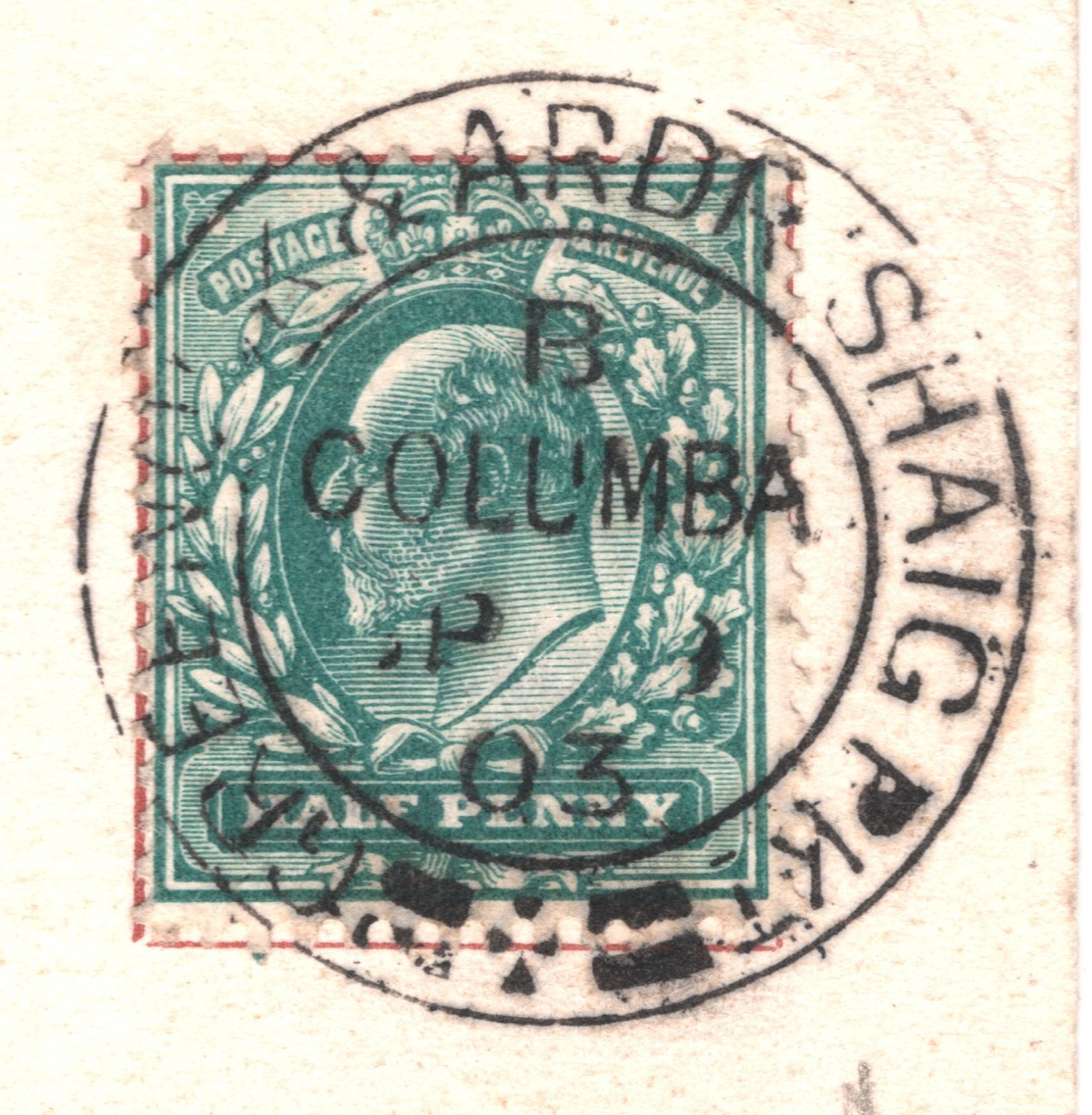 GB SCOTS ISLANDS STEAMER Postcard Rare Type *GREENOCK & ARDSISHAIG PKT* 1903 CDS Ship COLUMBA WY87