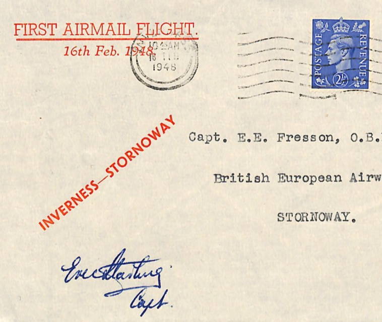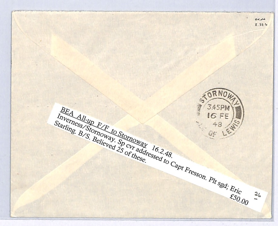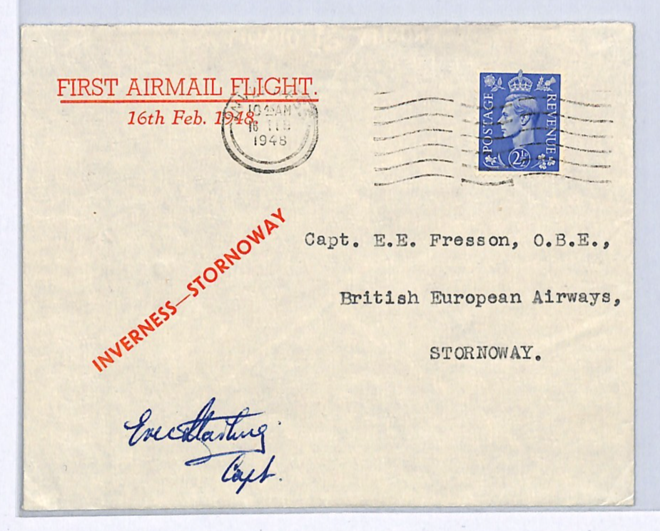 RARE SCOTS ISLANDS FLIGHT clearly signed by *CAPTAIN ERIC STARLING*. Stated to be ONE OF JUST 25 flown. Extremely Fine for an item of this type & period. Please look at all the scans to help form your own opinion (WAF).