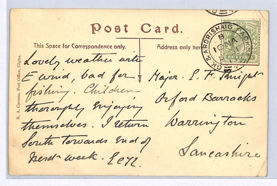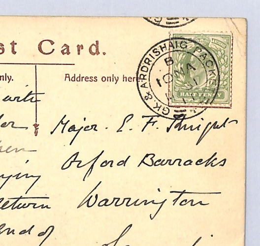 GB Scotland Maritime Postcard *GK & ARDSISHAIG PACKET* CDS Warrington 1911 WY88