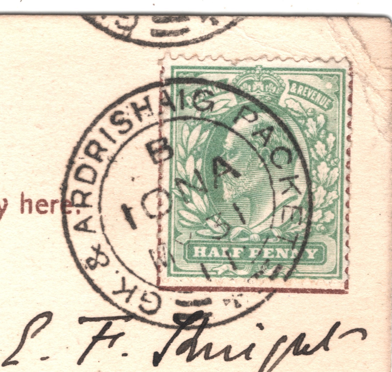 GB SCOTS ISLANDS STEAMER Postcard *GK & ARDSISHAIG PACKET* 1911 Ship IONA WY88
