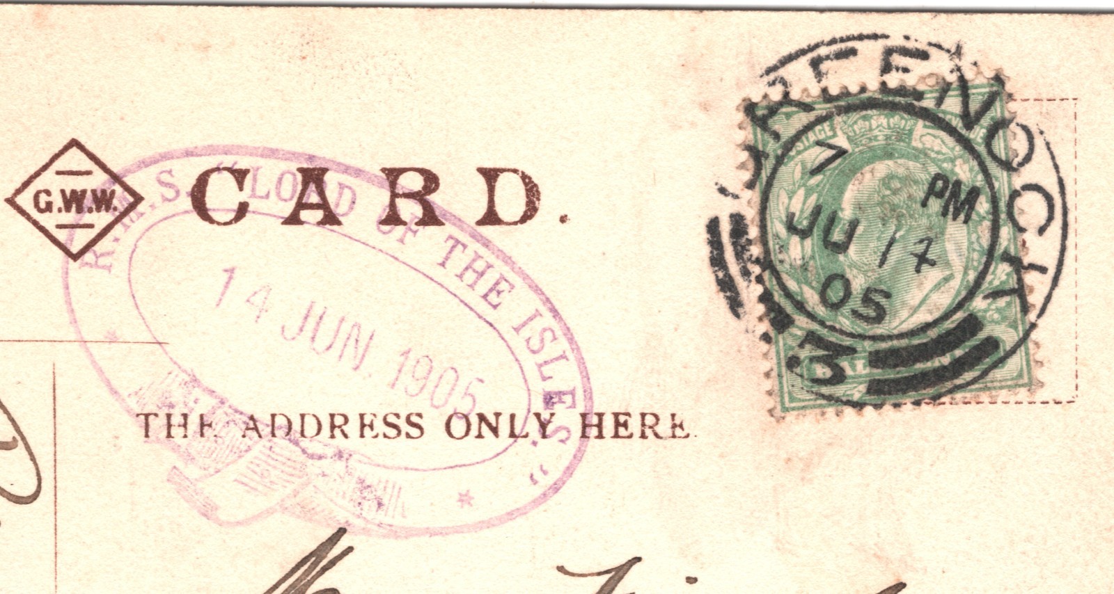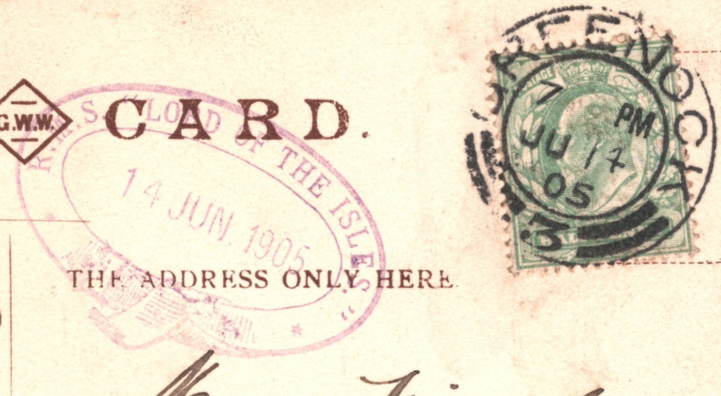 GB SCOTS ISLANDS STEAMER Postcard *LORD OF THE ISLES* Ship Cachet 1905 CDS WY84