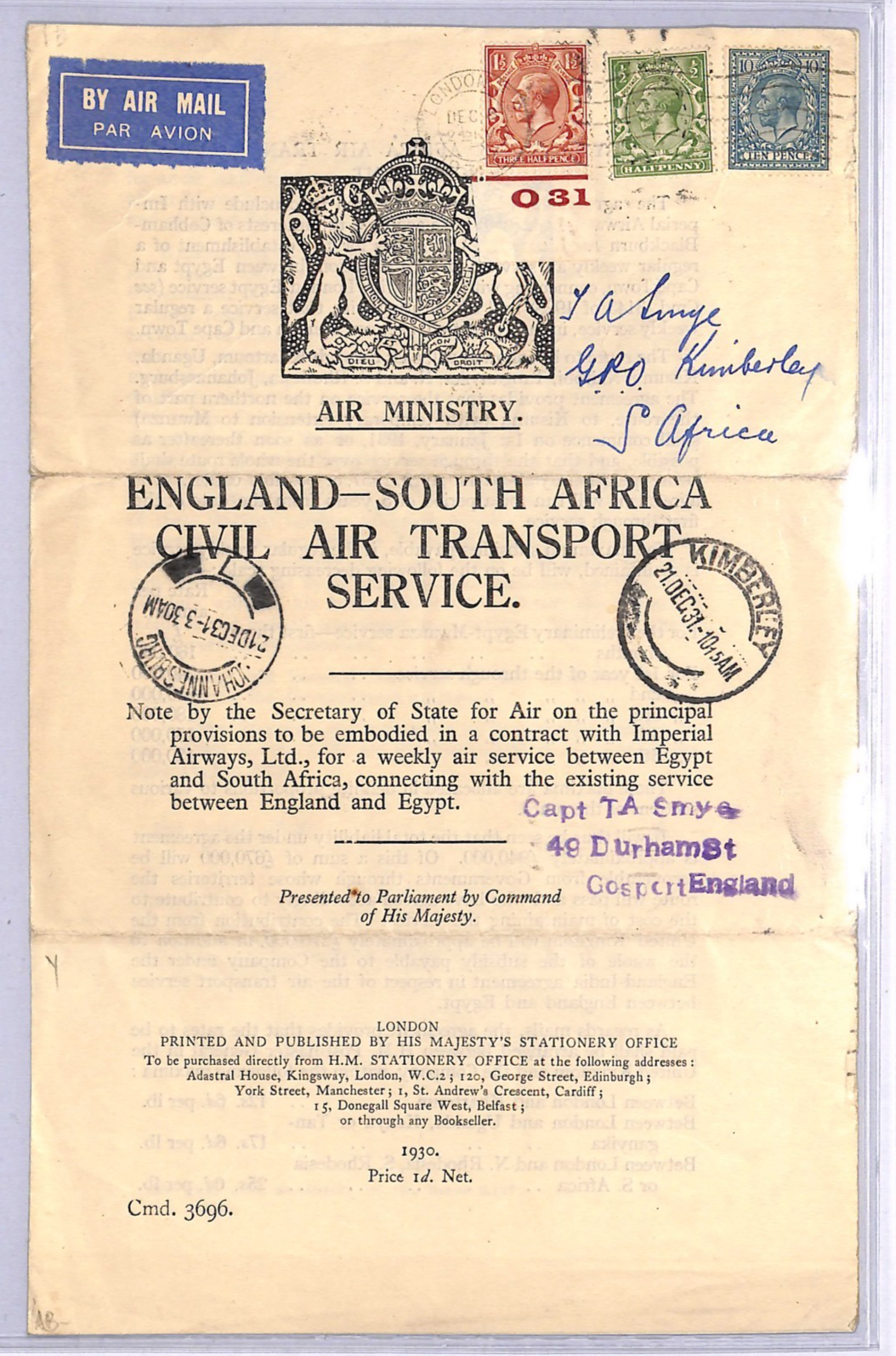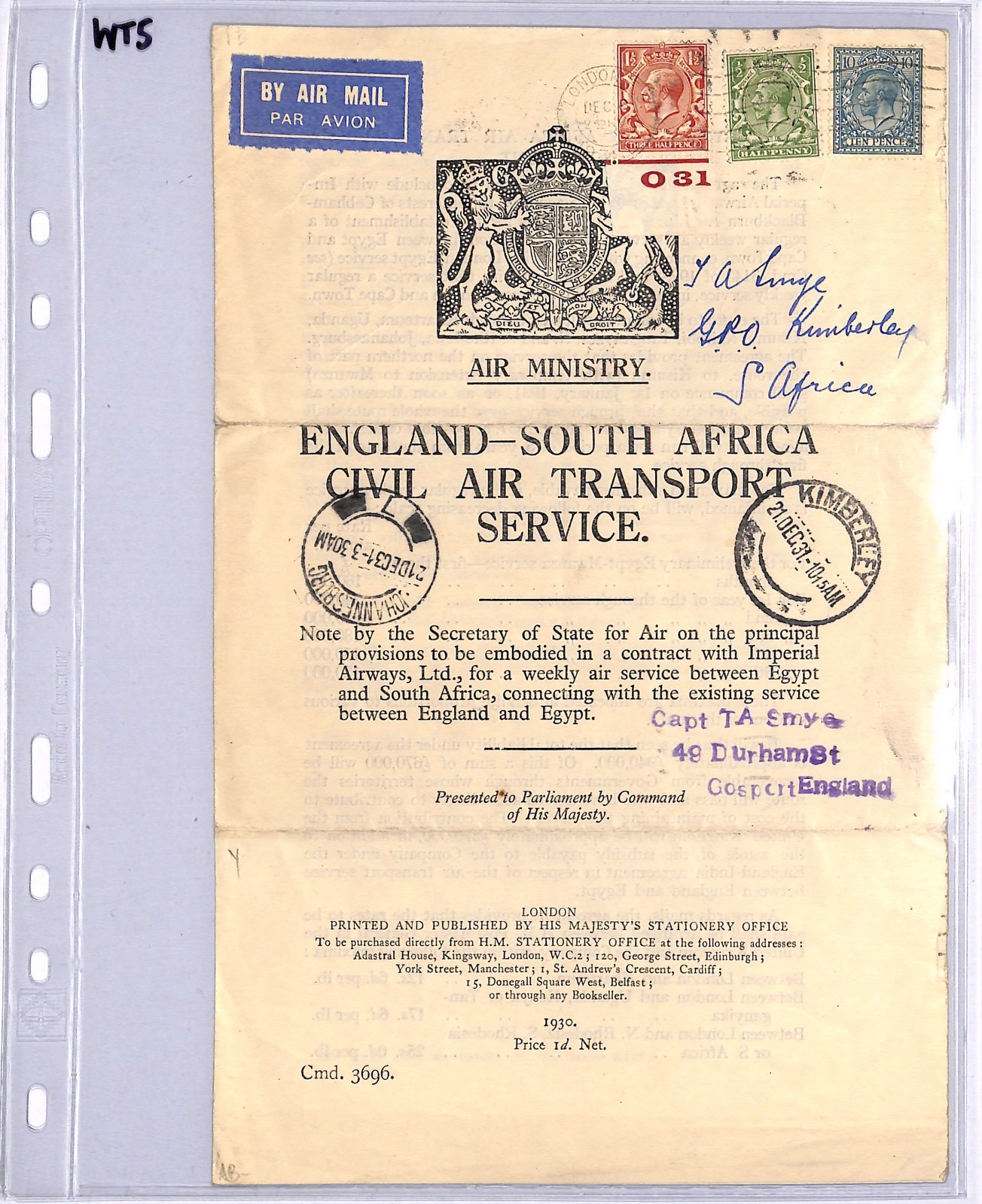 GB/SOUTH AFRICA Air Mail FIRST FLIGHT *MINISTRY NOTICE* Flown 1934 Kimberley WT5