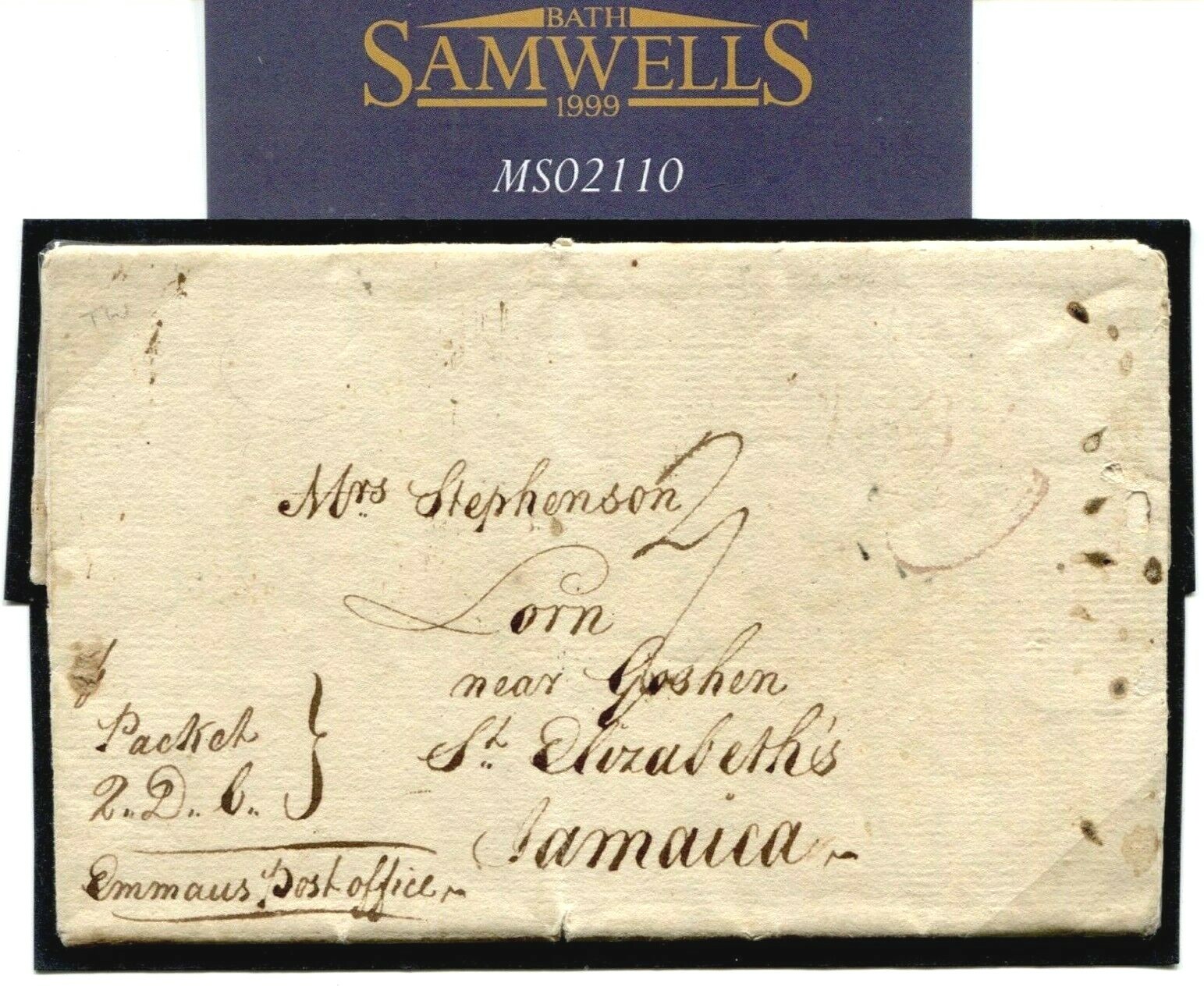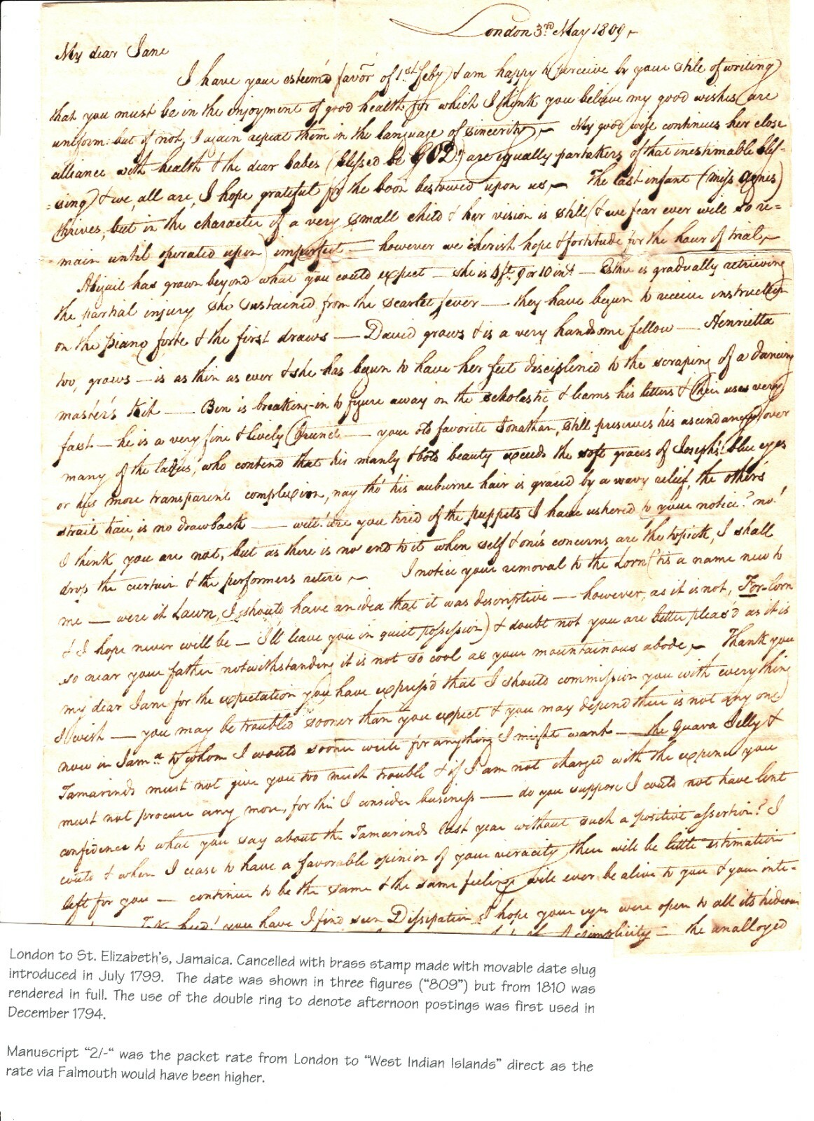 GB TRANSATLANTIC MAIL London Letter 1809 JAMAICA *St Elizabeth's* Cover MS2110