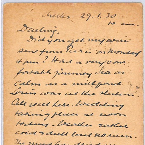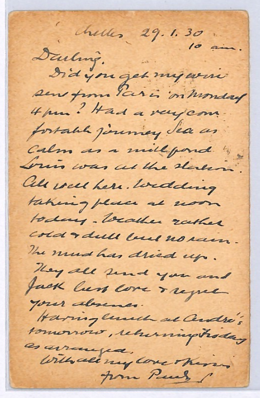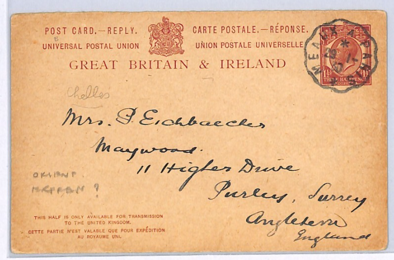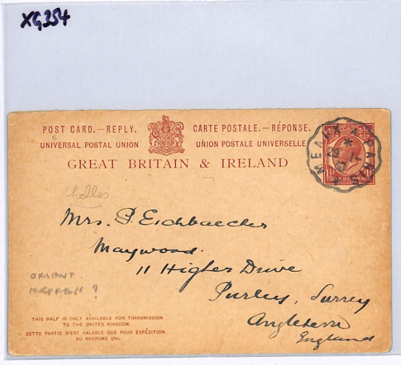 GB USED ABROAD KGV 1½d Card FRANCE RAILWAY 1930 *Meaux-Paris* CONVOYEUR XG354