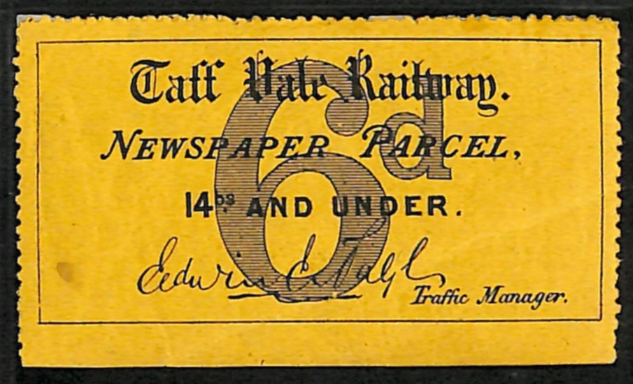 GB Wales TAFF VALE RAILWAY Newspaper Parcel Stamp TVR 6d/14lbs Mint MM VS120