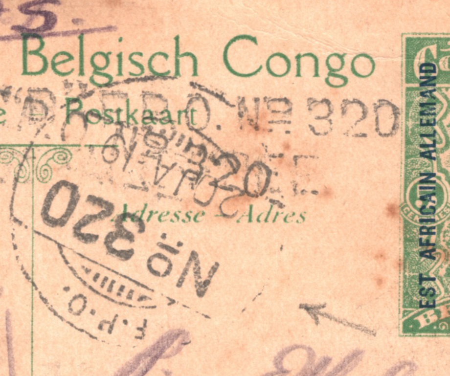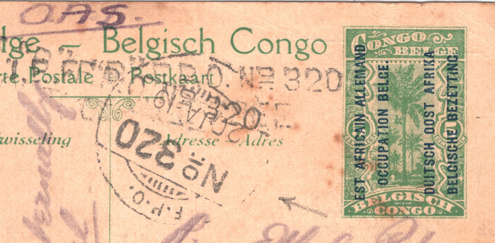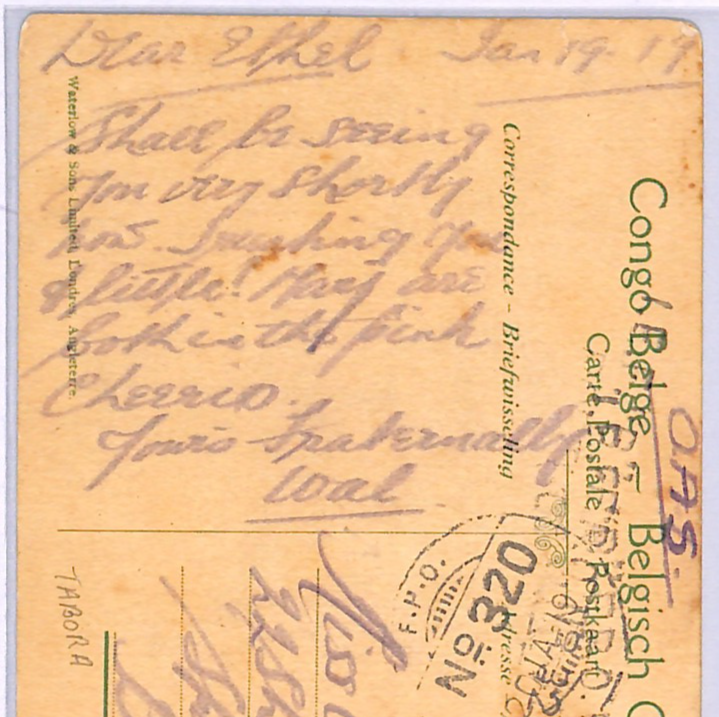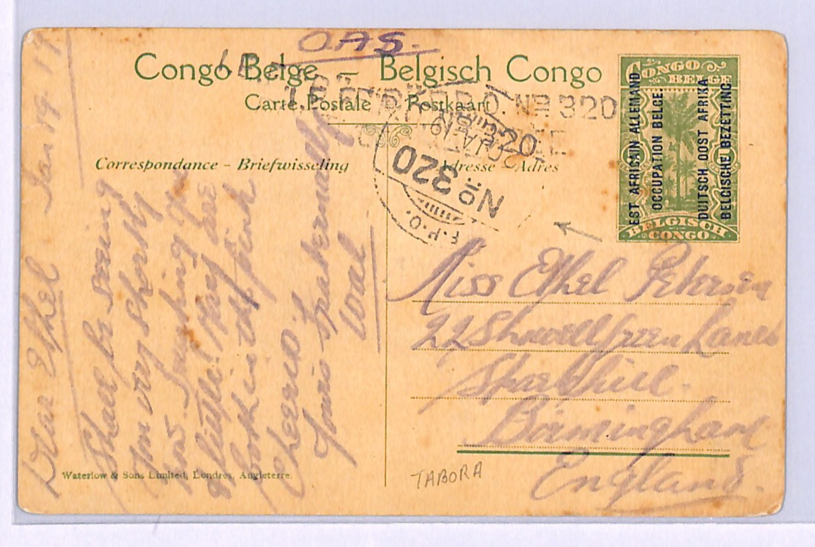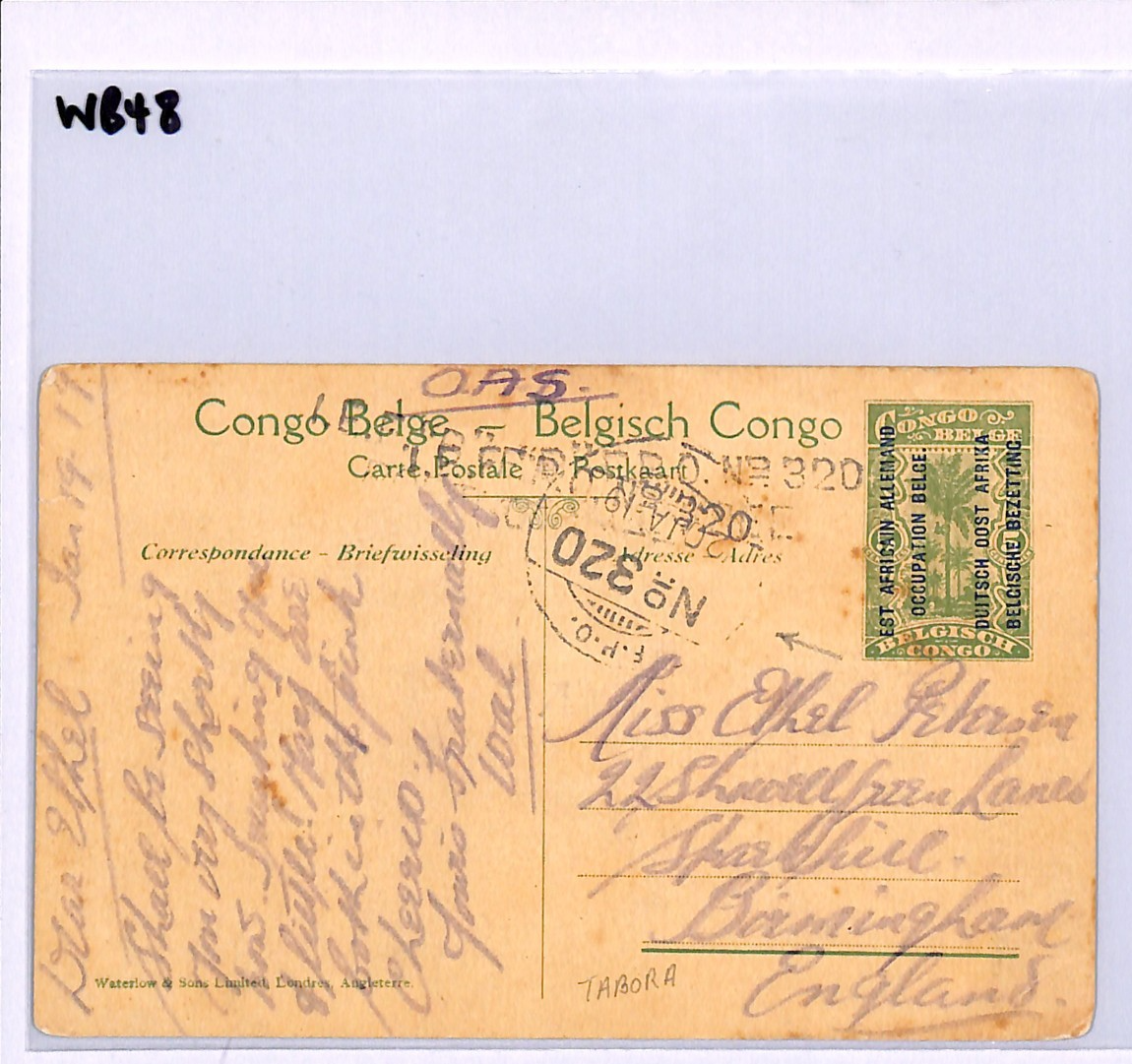 CONGO Belgium Cols Postcard GEA OCCUPATION Overprint India FPO GB Birmingham 1919 WB48