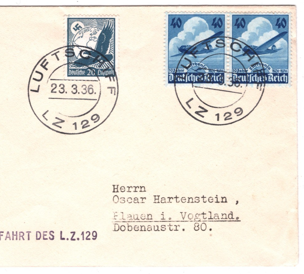 GERMANY HINDENBURG ZEPPELIN Air Mail Card FIRST FLIGHT Flauen Lorch 1936 KZ317