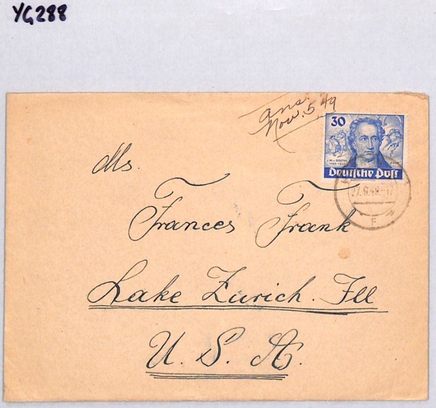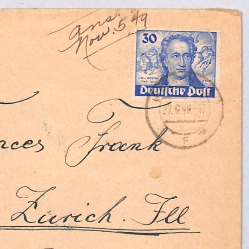 GERMANY (BERLIN) 30pf *GOETHE* Used 1949 CDS Cover USA POETRY {samwells}YG288