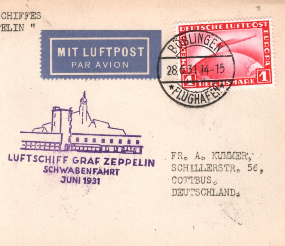 GERMANY Card GRAF ZEPPELIN 1m Air Mail *SCHWABENFAHRT* 1931 Böblingen CDS KZ161