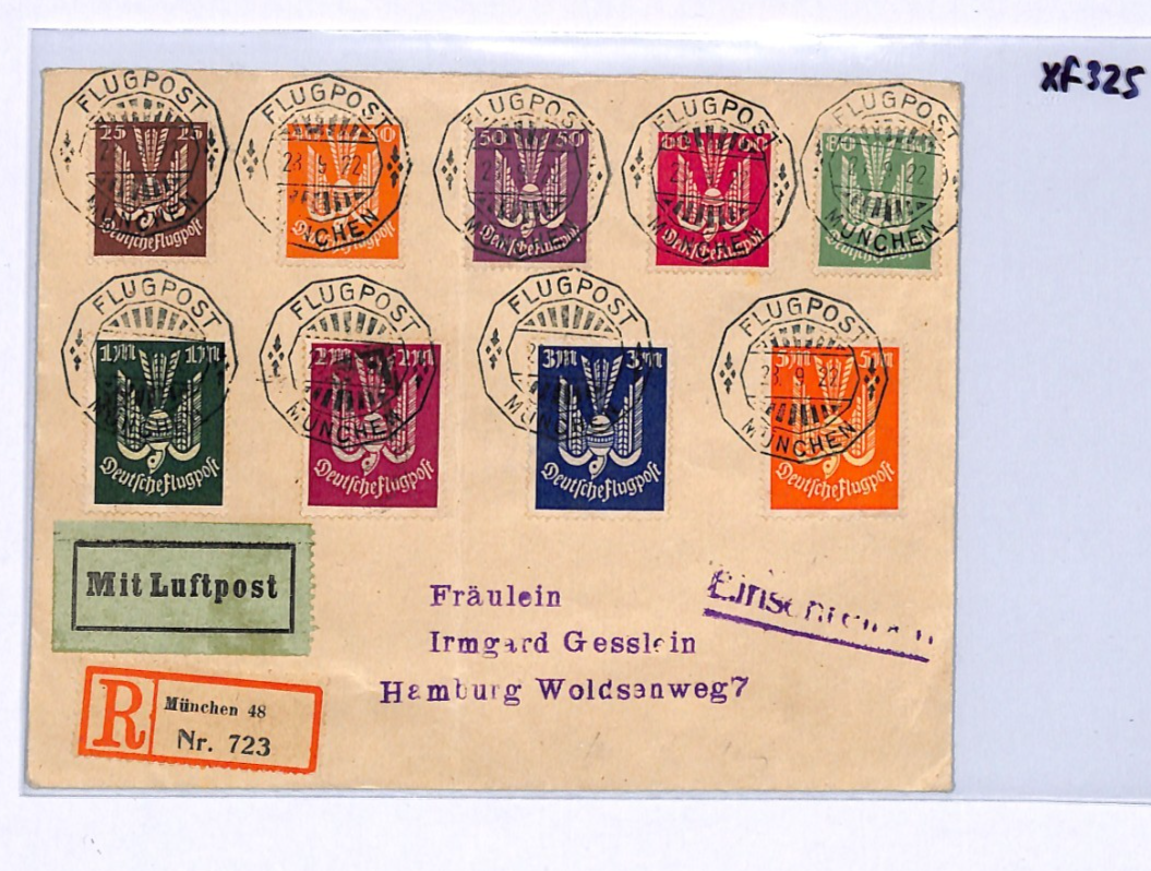 GERMANY Cover 1922 Air Mail CARRIER PIGEON Set 5m Munich Reg Hamburg BIRDS XF325