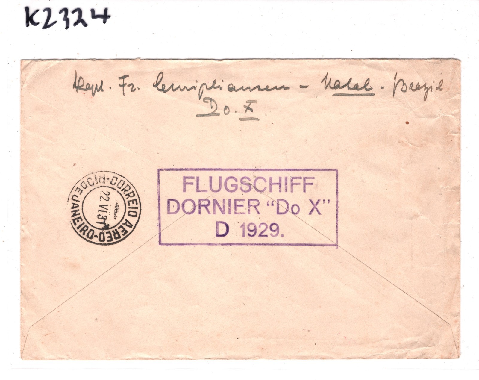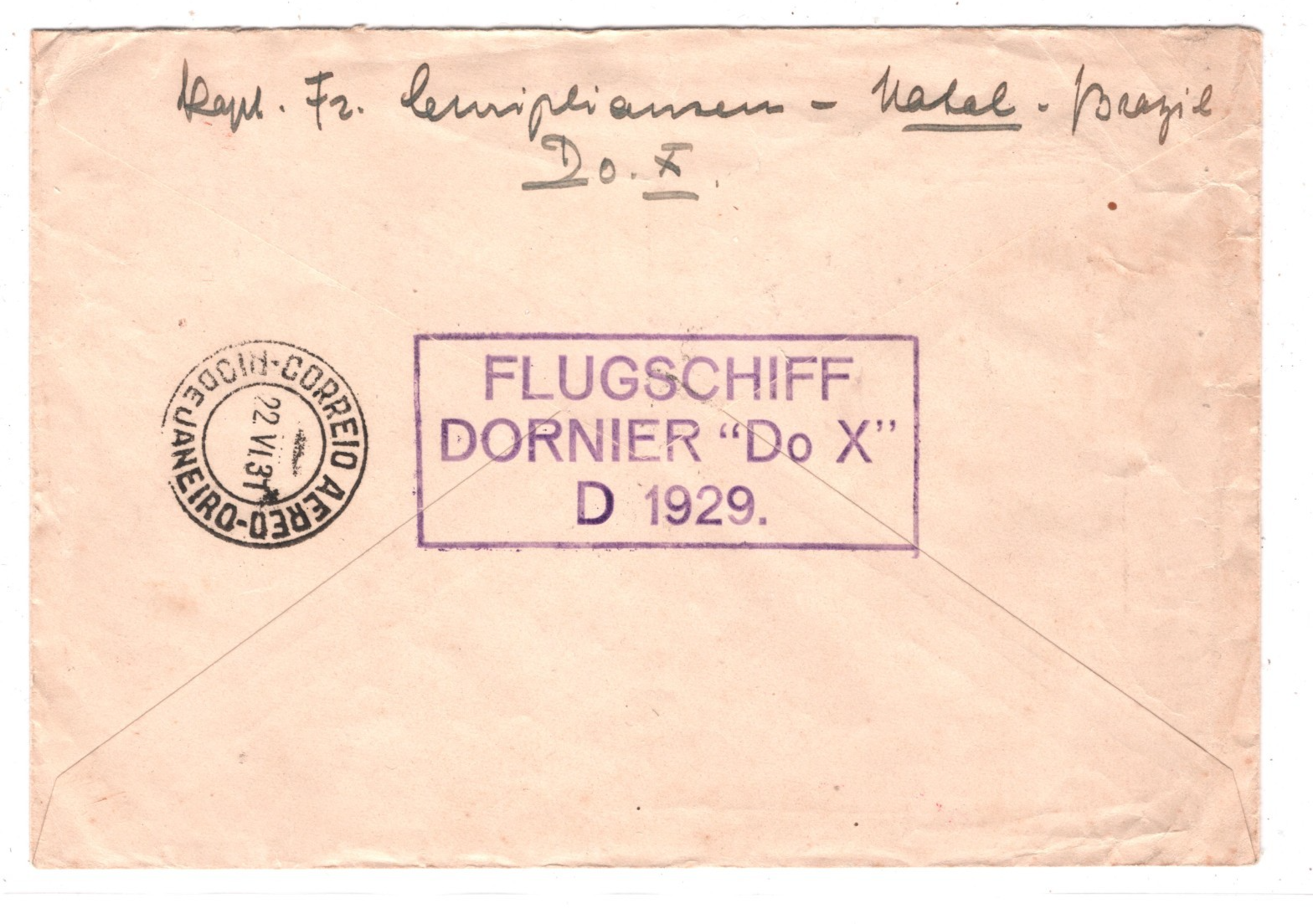 RARE *KOMMANDO* IMPRINT STATIONERY of the Captain of the Do-X. SELDOM SEEN OR OFFERED. Superb violet cachet on reverse. VG/Fine for an item of this type & period. Please look at all the scans to help form your own opinion (WAF).