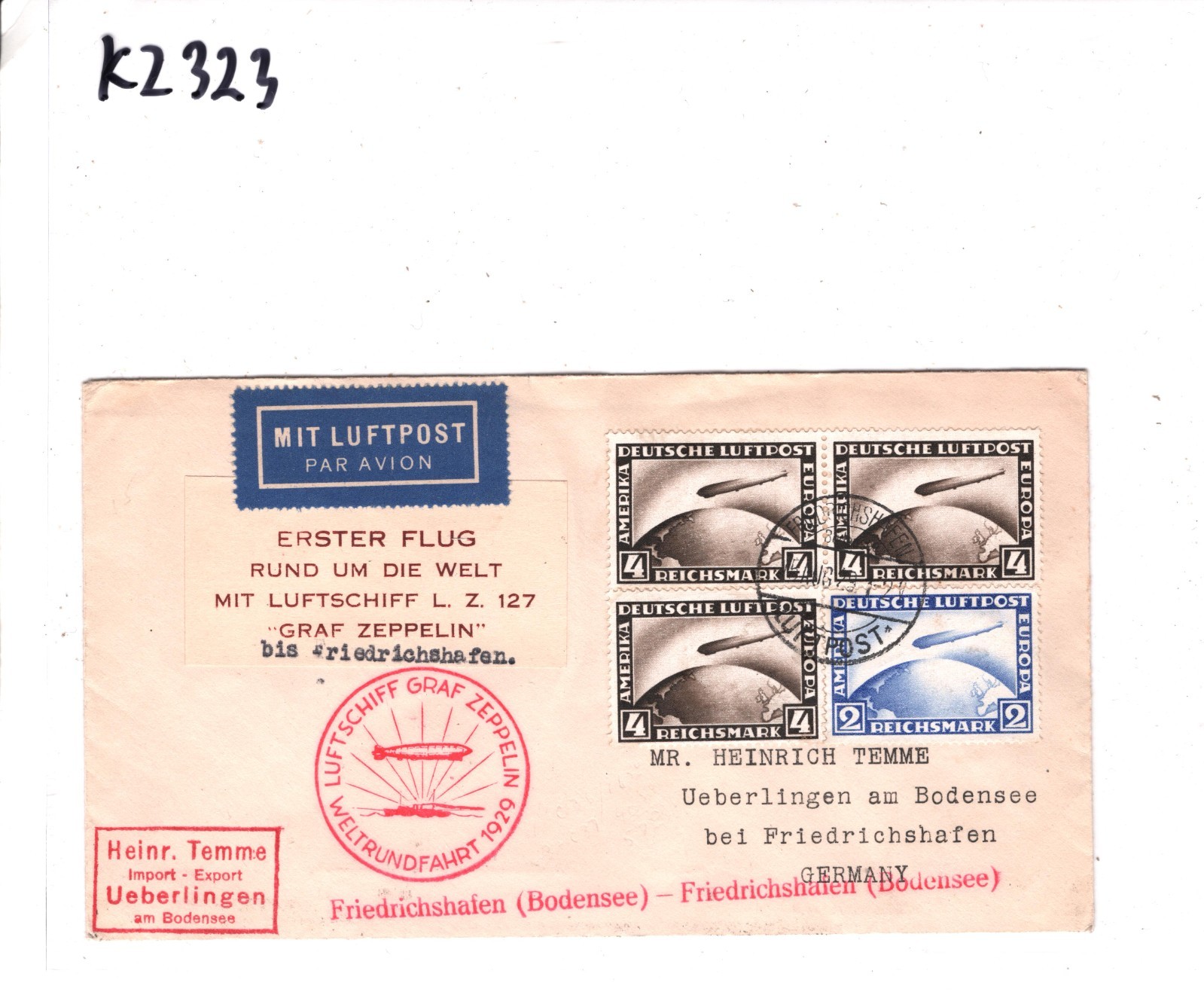 GERMANY GRAF ZEPPELIN Air Mail Cover 1929 WELTRUNDFAHRT Cachet Überlingen KZ323
