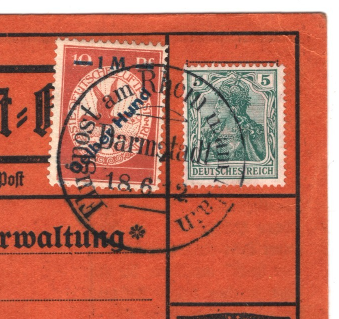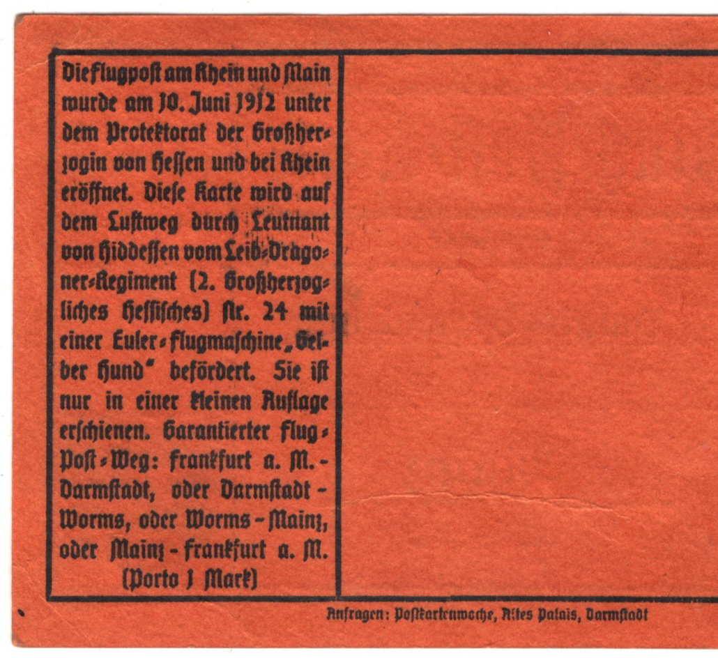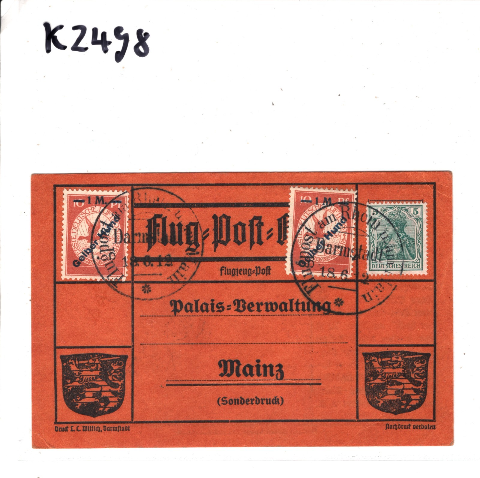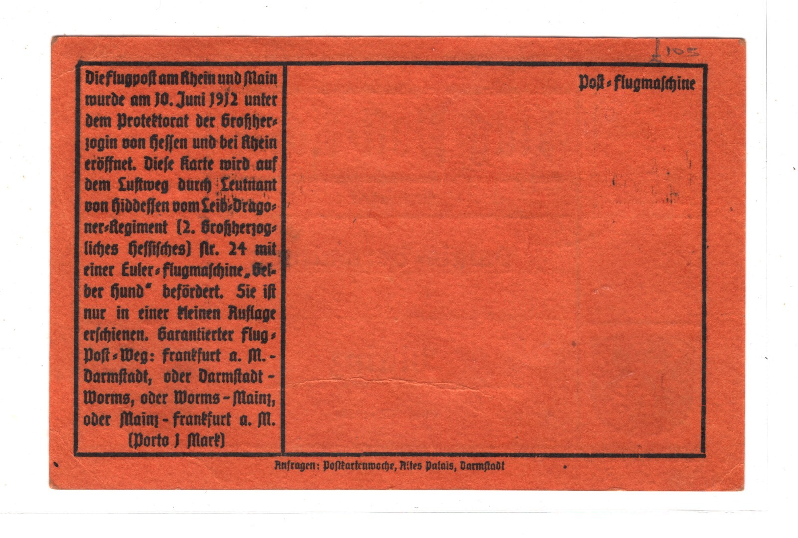 GERMANY Pioneer 1912 Air 1m *Gelber-Hund* Stamp{2} Darmstadt 18/6 Flight KZ498