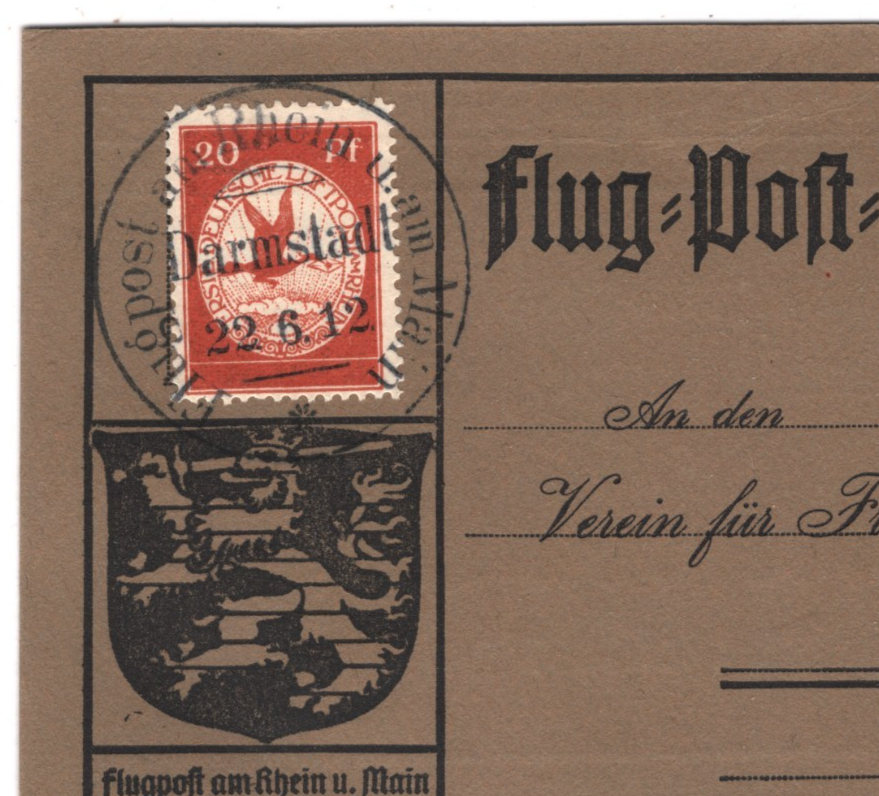 GERMANY GELBER HUND 1912 Air Mail 20pf SEMI-OFFICIAL{3} Darmstadt Zeppelin KZ495