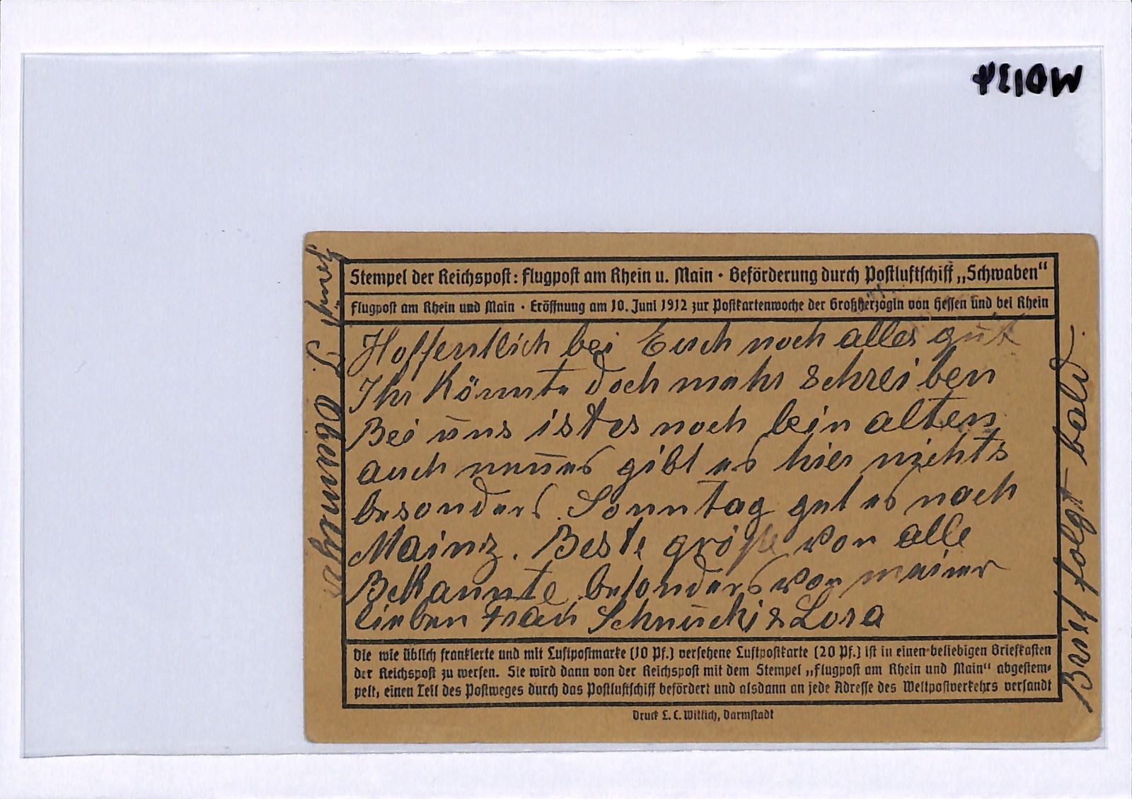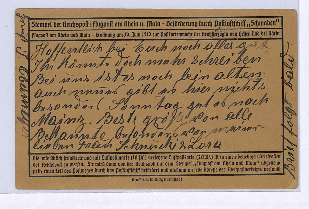 GERMANY Air Mail 1912 ZEPPELIN SCHWABEN Pigeon SEMI-OFFICIAL Offenbach WD134