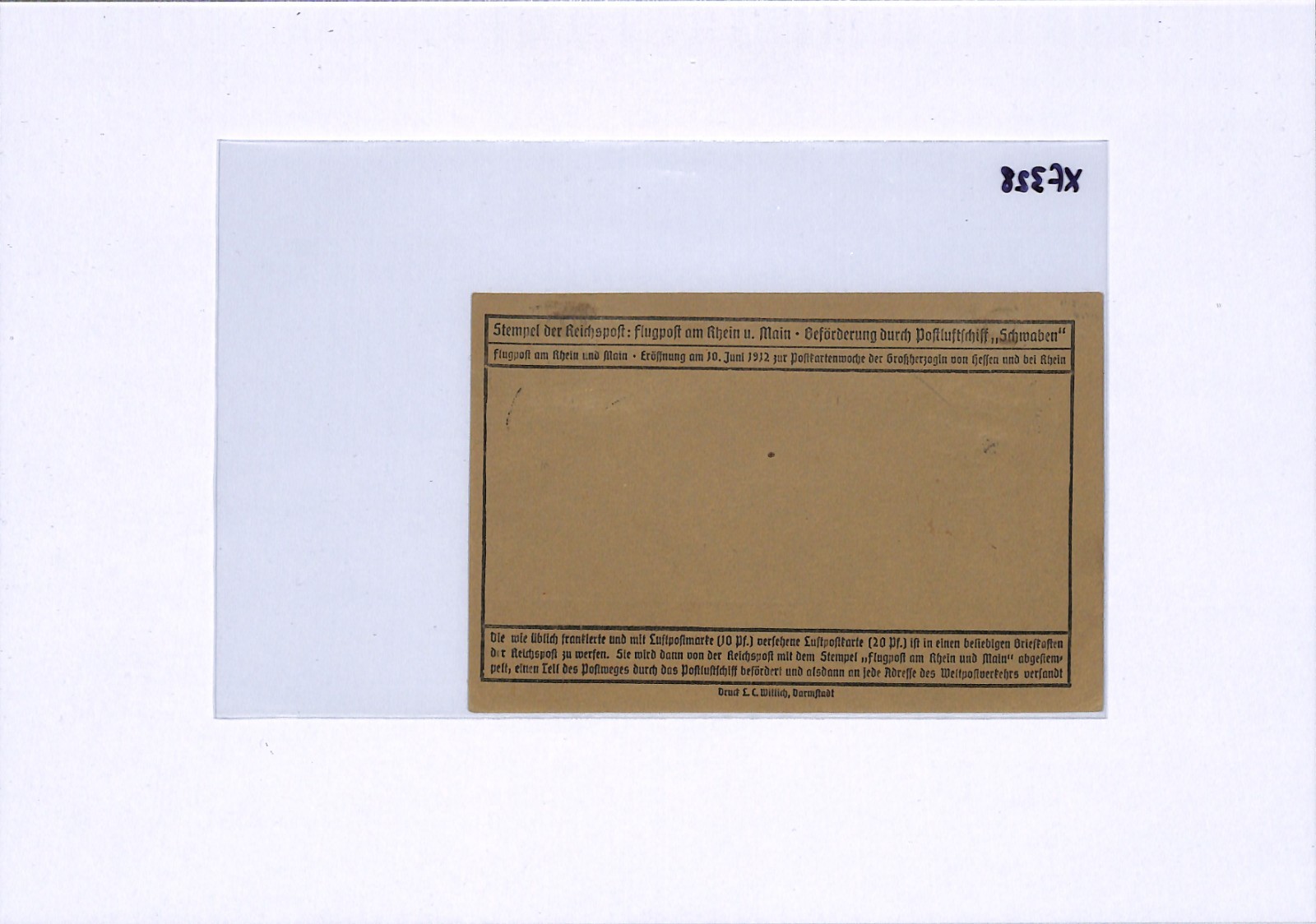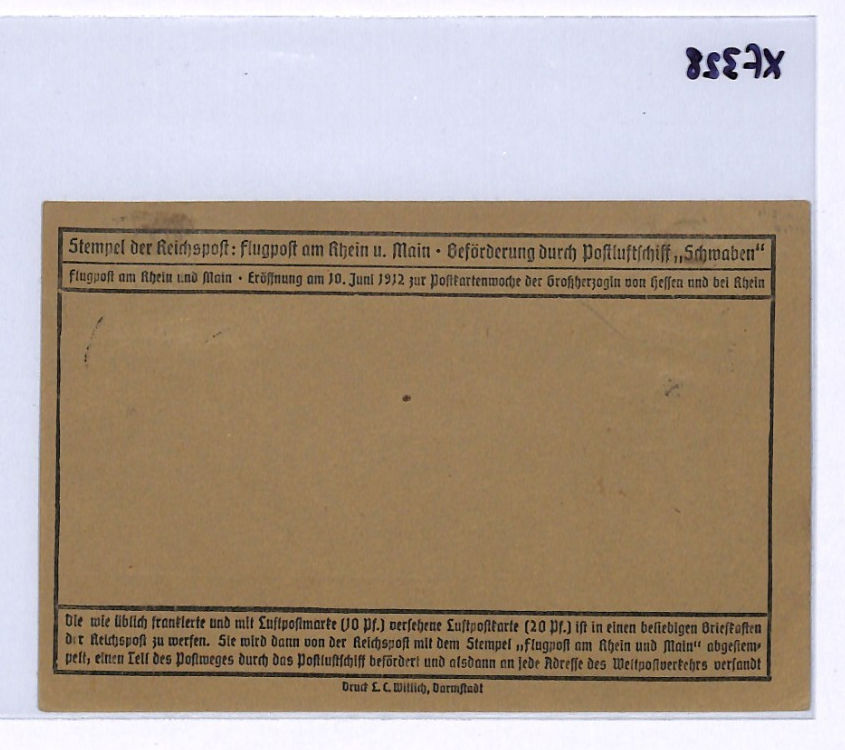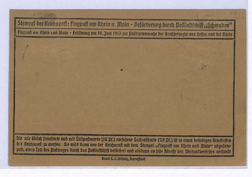 GERMANY Air Mail Card ZEPPELIN SCHWABEN 1912 20pf SEMI-OFFICIALS Darmstadt XF328