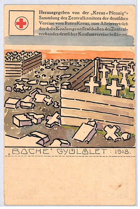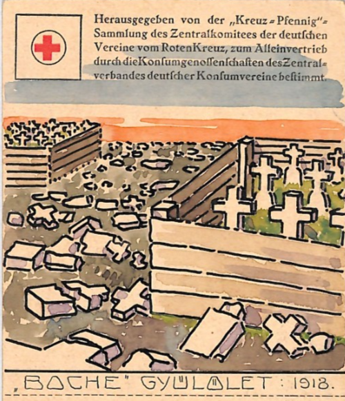 GERMANY WW1 RED CROSS Postcard 1918 Feldpost ANTI-WAR Illustrated GRAVES PX294