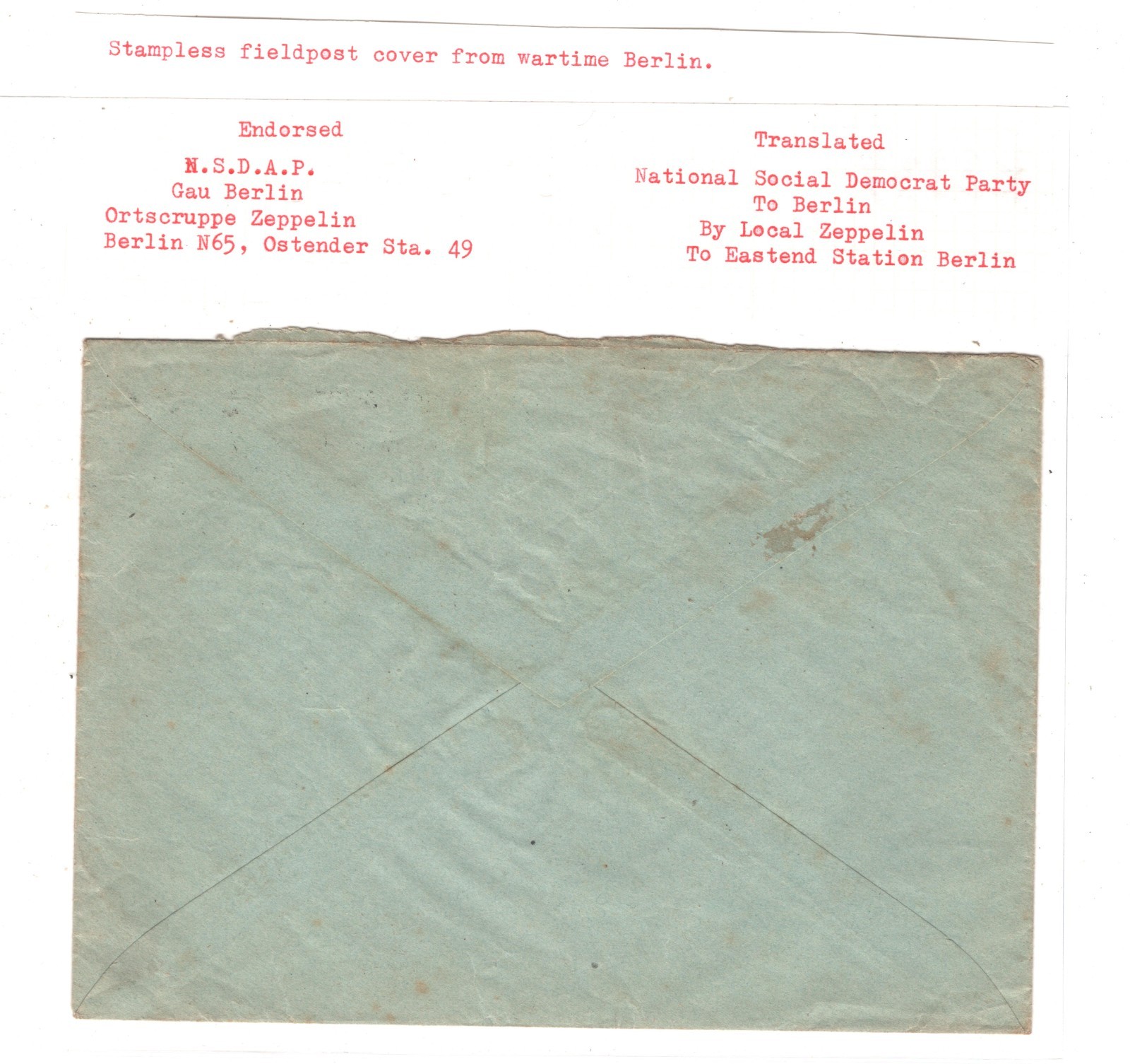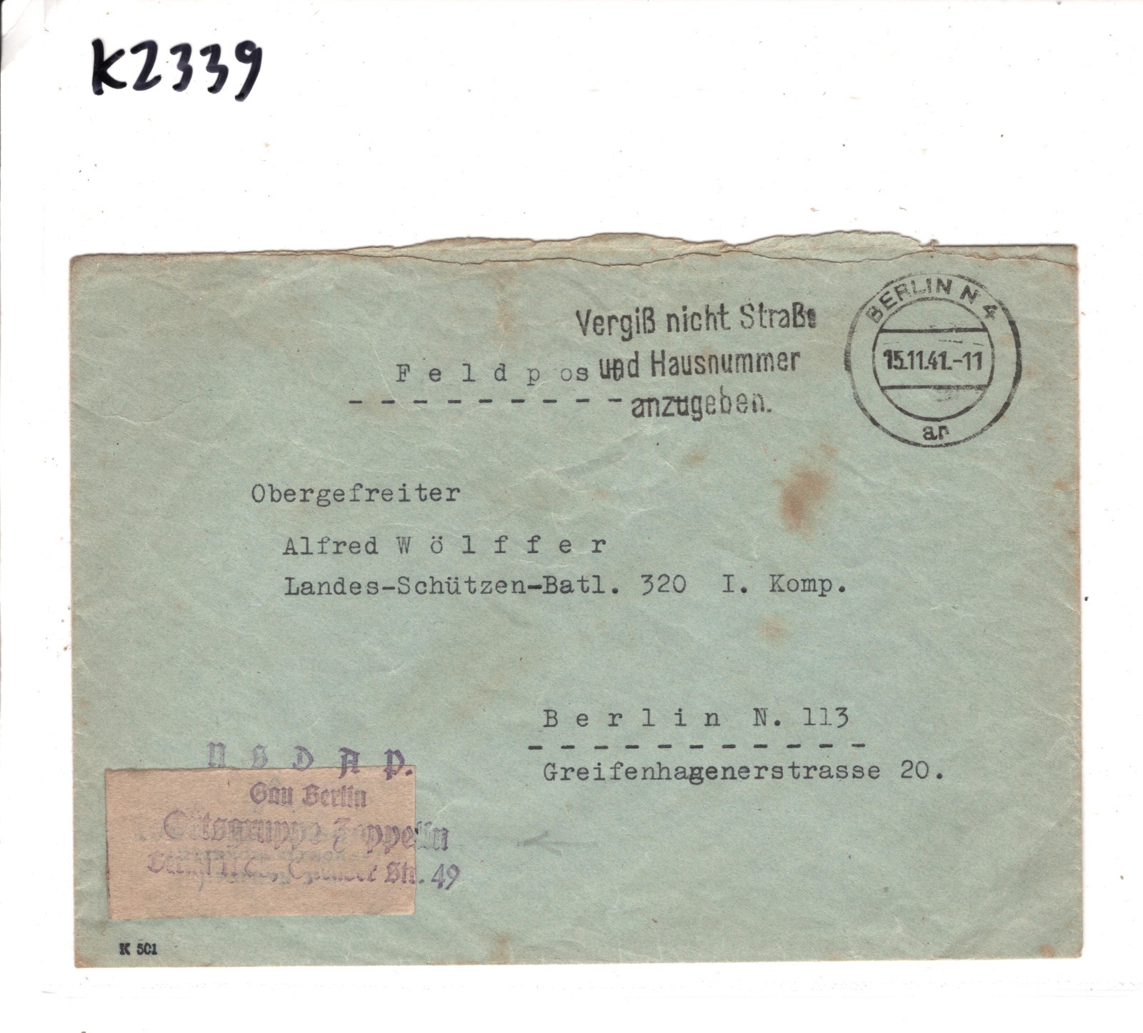 GERMANY WW2 Military Cover *ZEPPELIN* NSDAP UNIT Berlin 1941 Feldpost KZ339