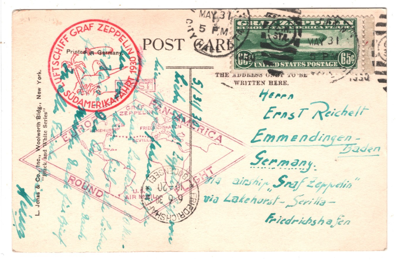 GRAF ZEPPELIN 65c USA Air Mail Card New York 1930 SÜDAMERIKAFAHRT Germany KZ470