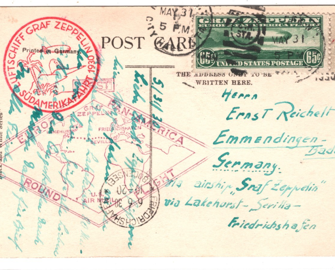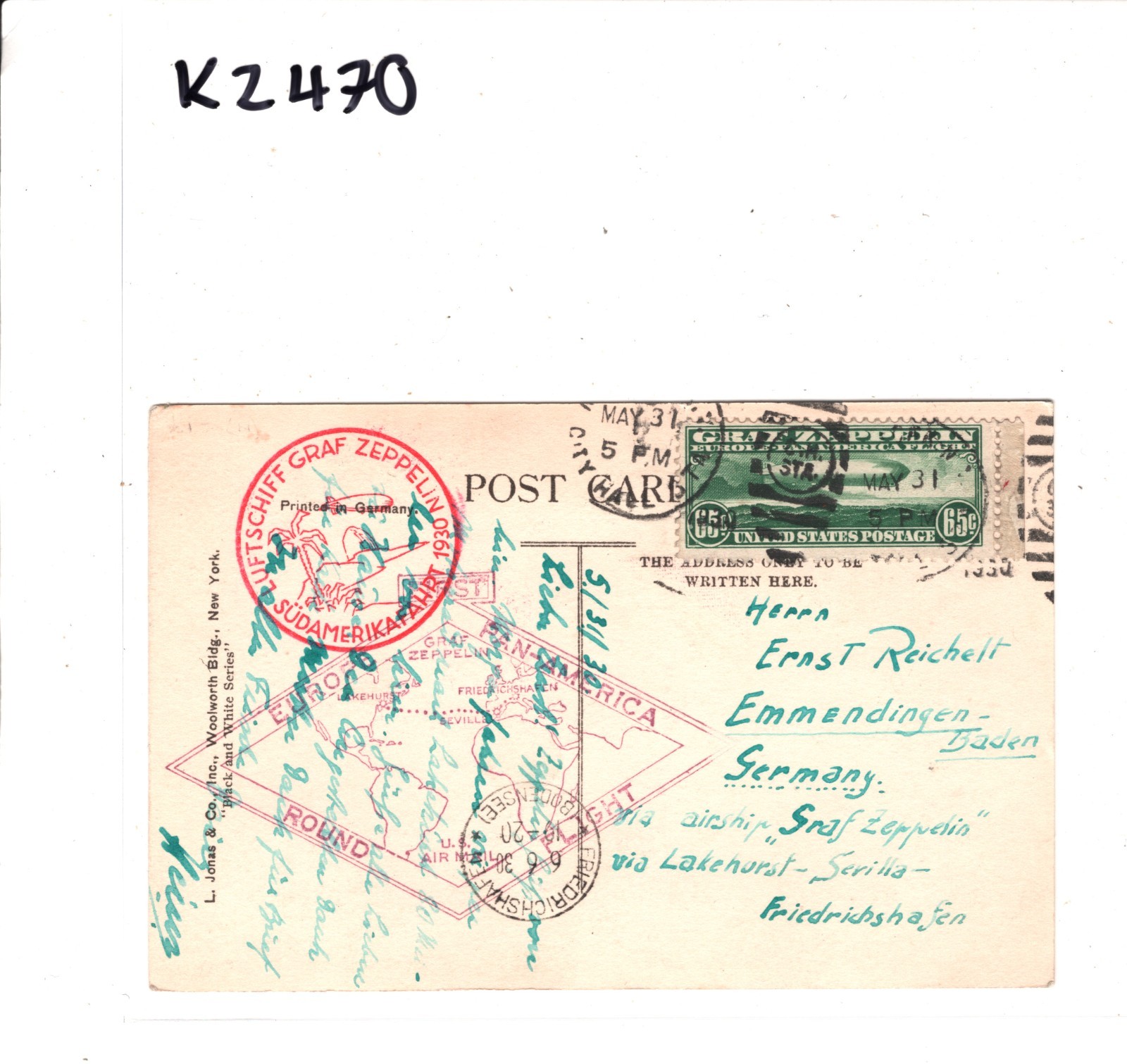 GRAF ZEPPELIN USA Air Mail Card New York SÜDAMERIKAFAHRT Germany 1930 KZ470
