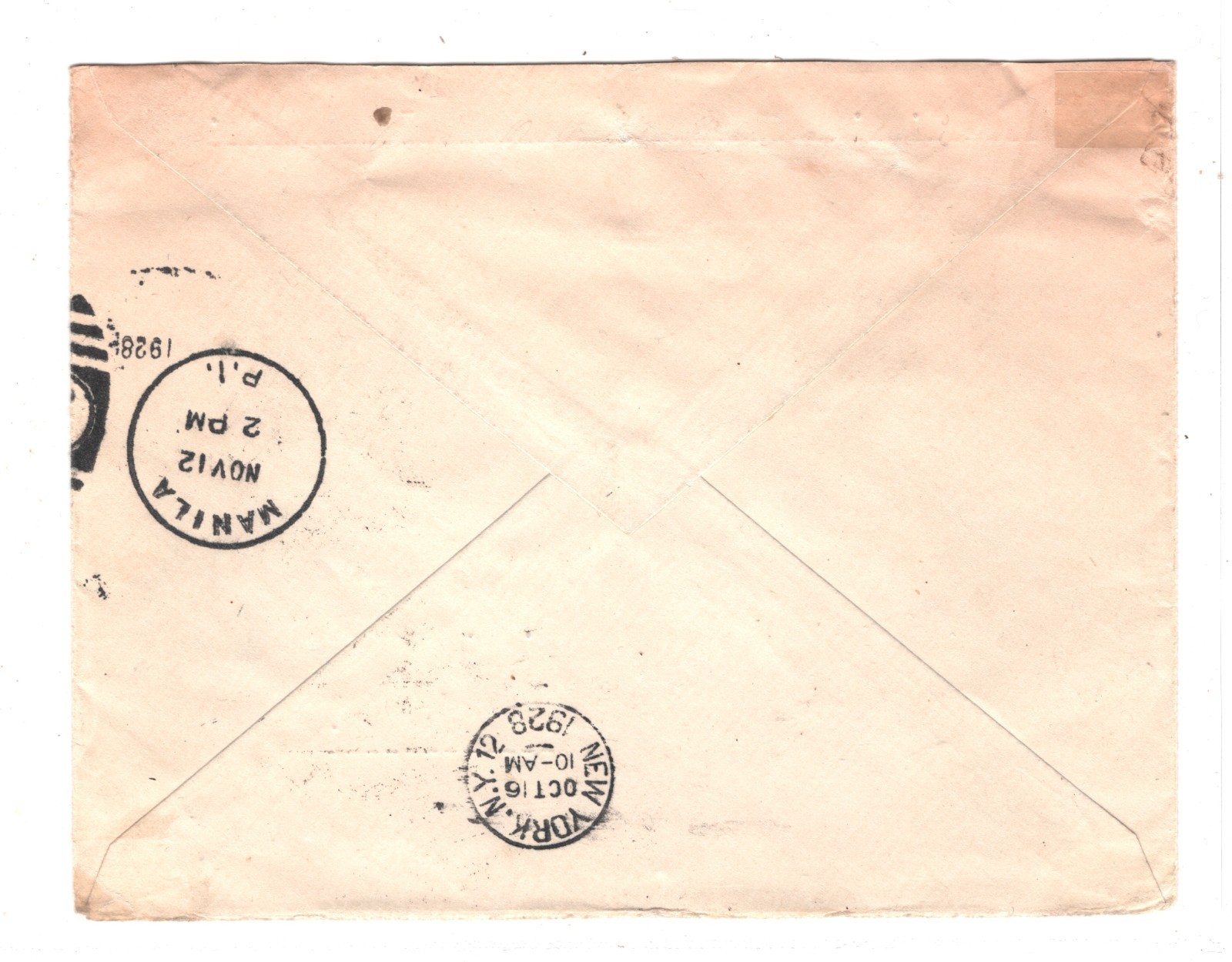 GRAF ZEPPELIN Air 4m Cover 1928 *PHILIPPINES* MAIL Manila via USA NY KZ491