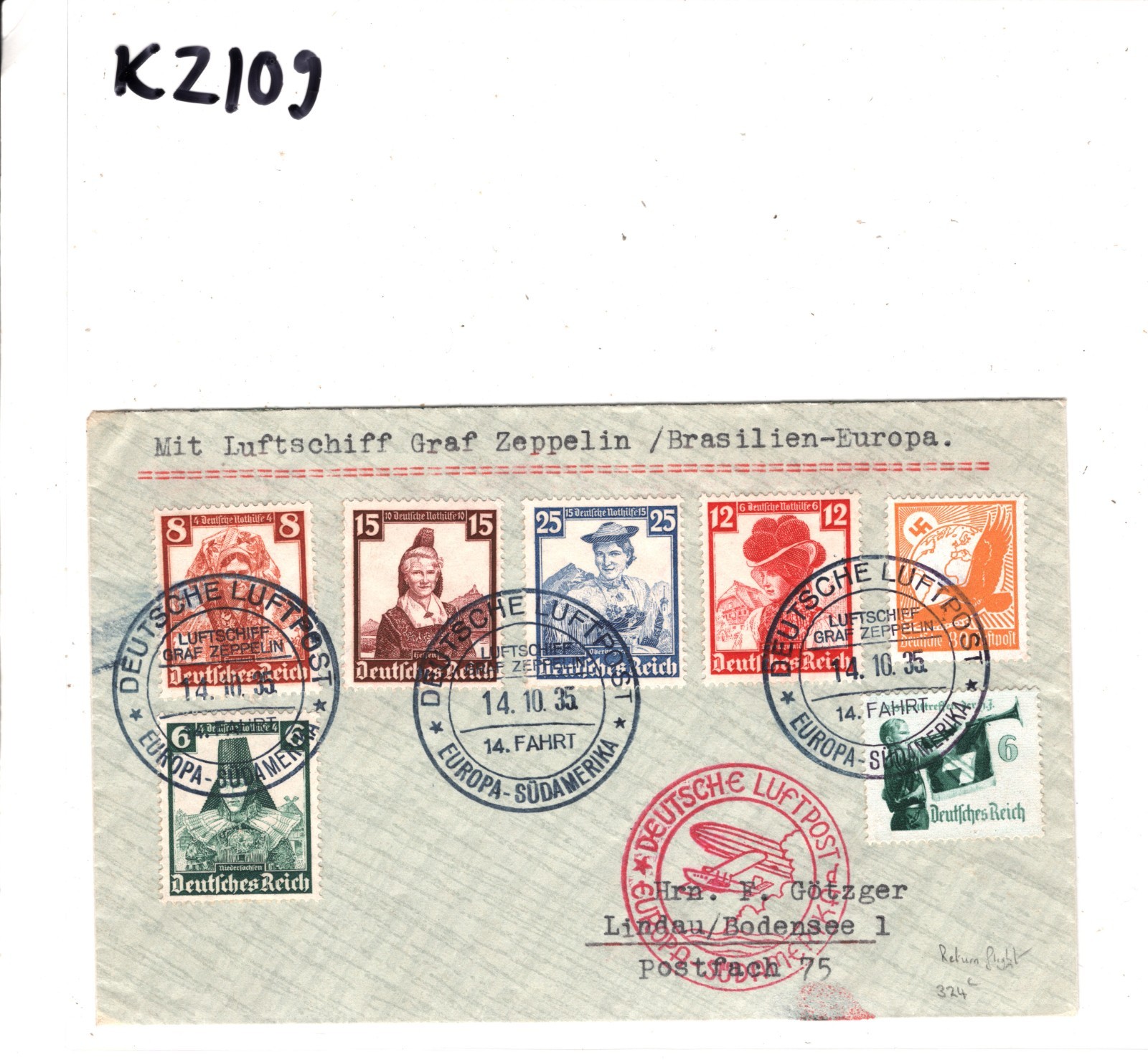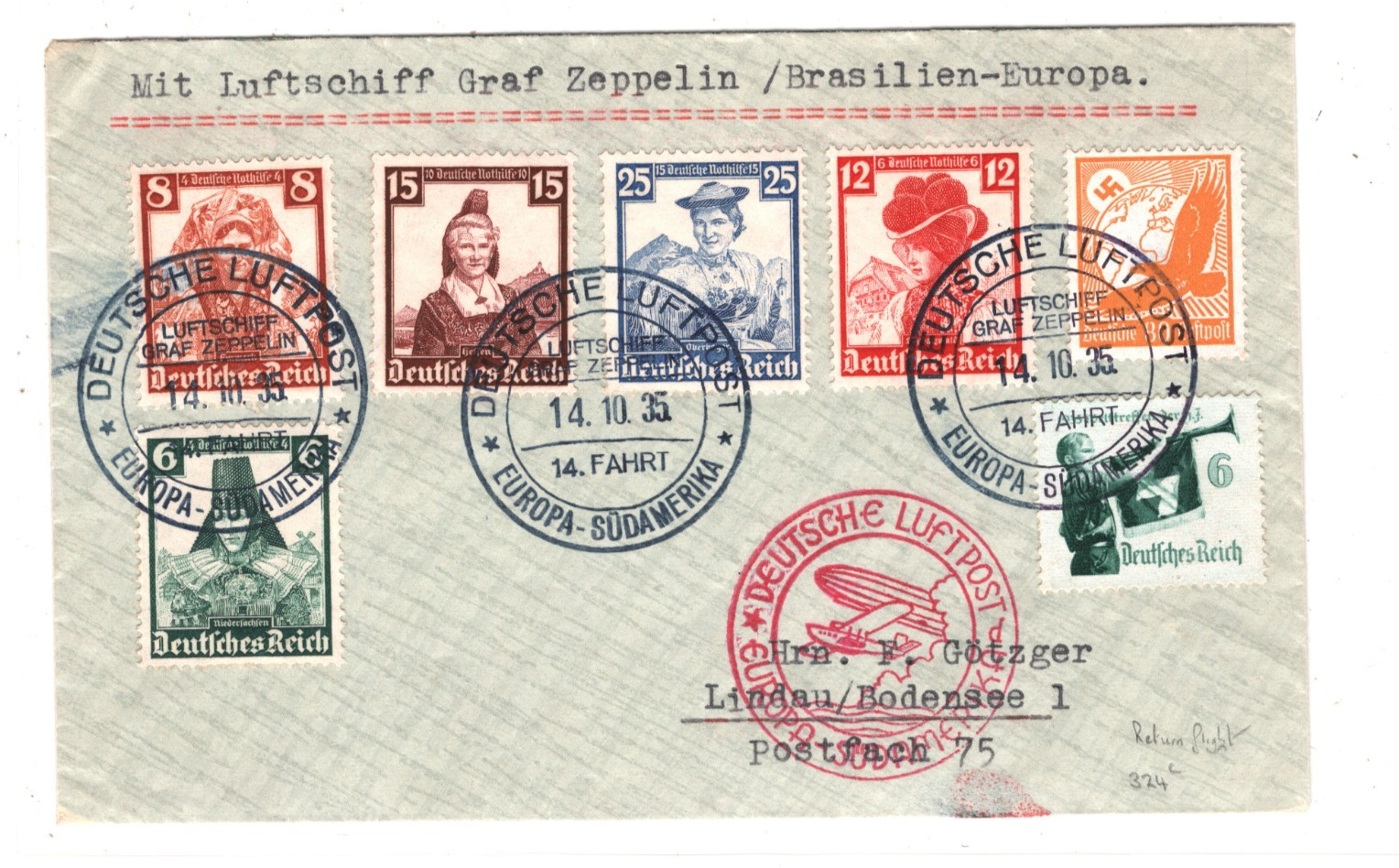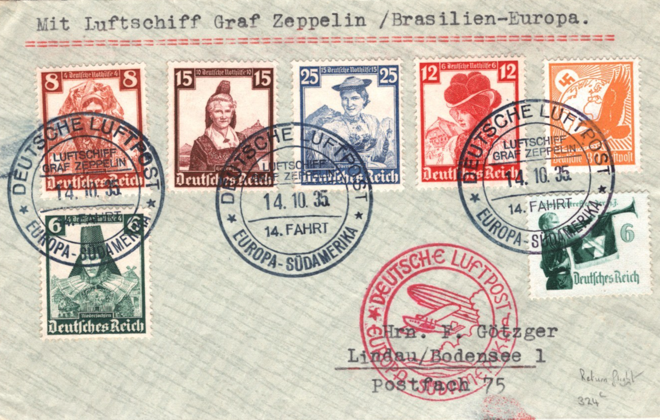 GRAF ZEPPELIN Air Cover *14.SÜDAMERIKAFAHRT* 1935 BRAZIL Lindau Return KZ109