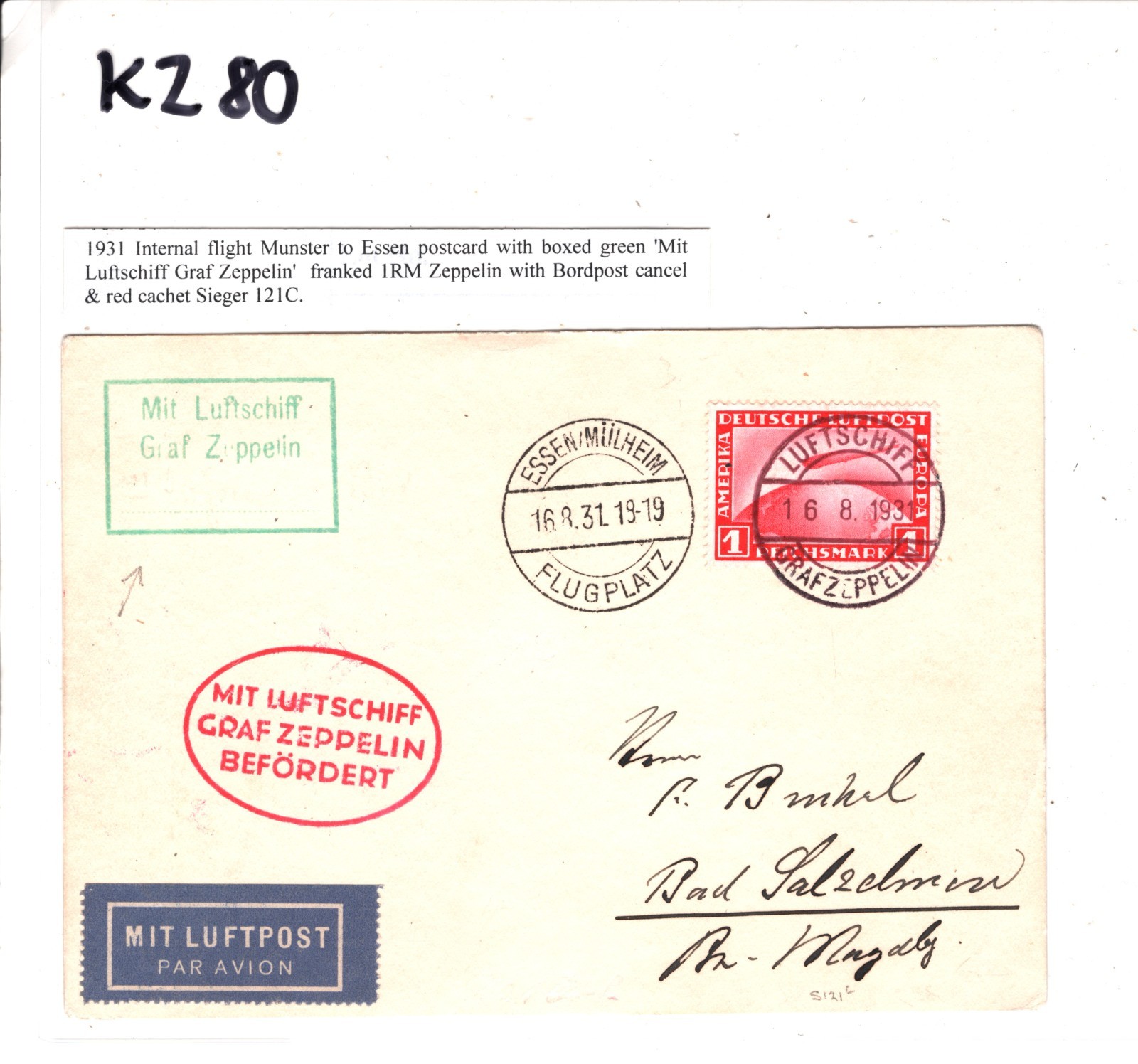 GRAF ZEPPELIN Air Mail Card MIT LUFTPOST Green Boxed Cachet 1931 Essen Munster Germany KZ80