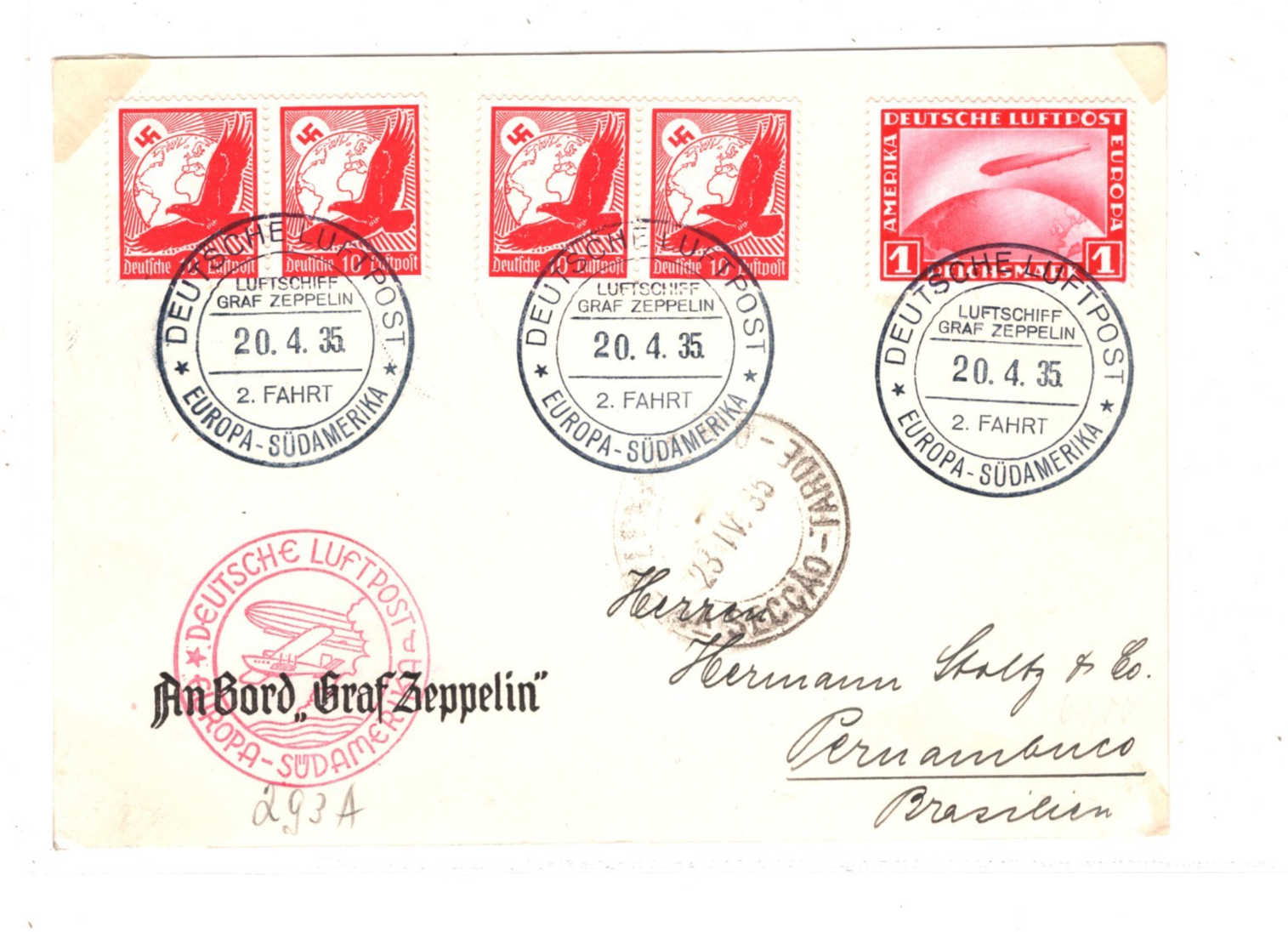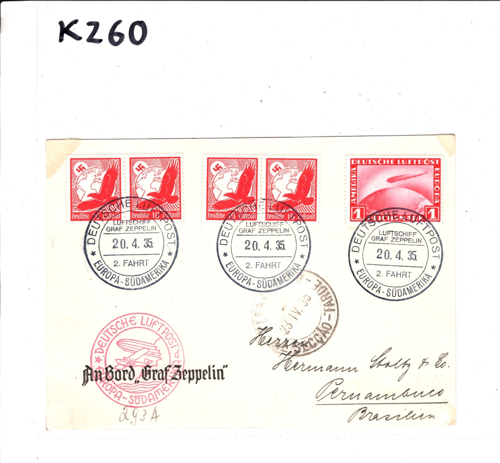 GRAF ZEPPELIN Air Mail Card 2 SÜDAMERIKAFAHRT 1935 BRAZIL Pernambuco KZ60