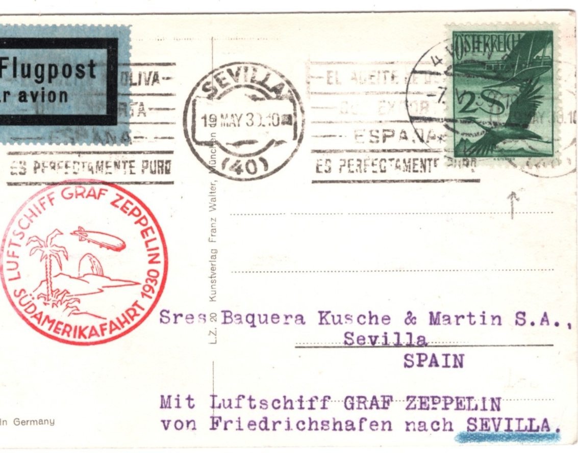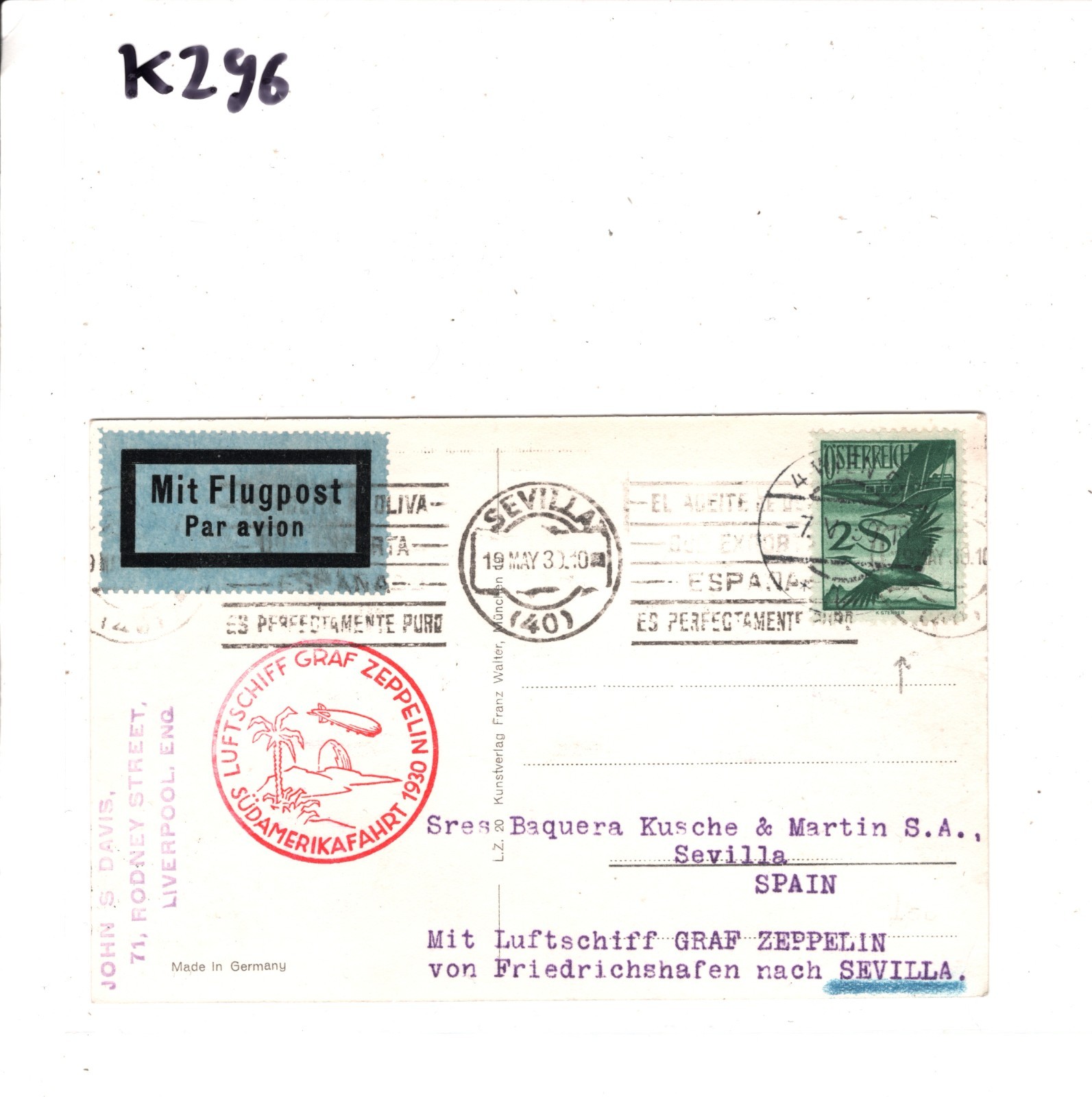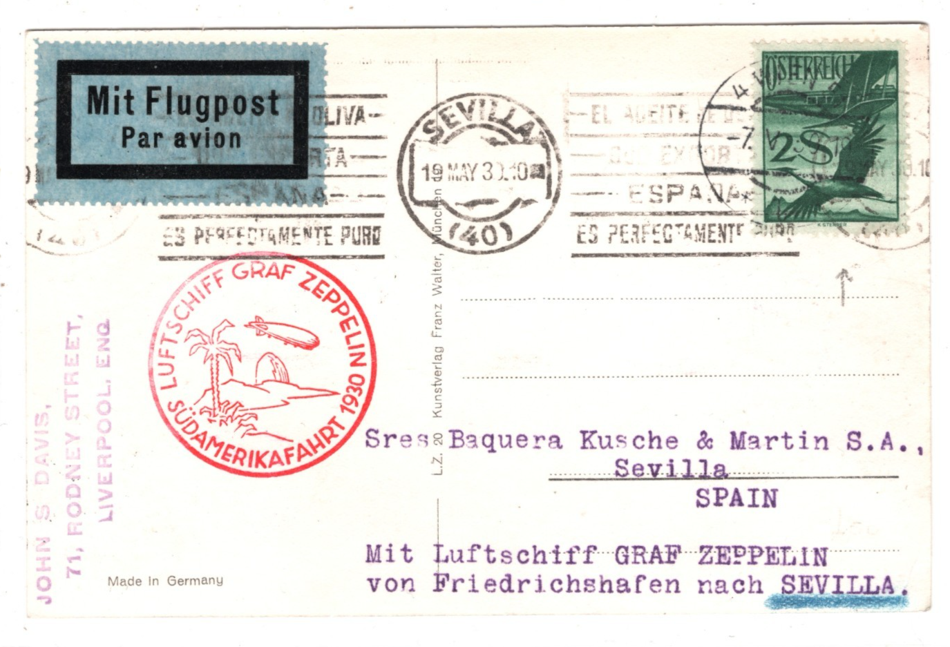 GRAF ZEPPELIN AUSTRIA Air Mail Card SÜDAMERIKAFAHRT SPAIN Sevilla Wien 1929 KZ96